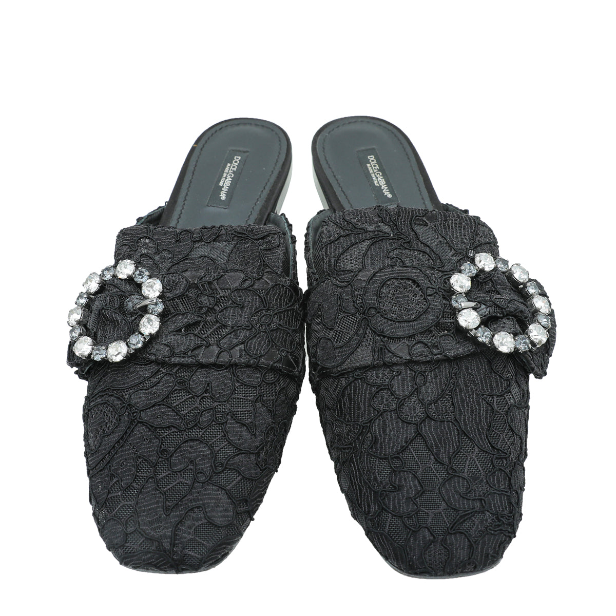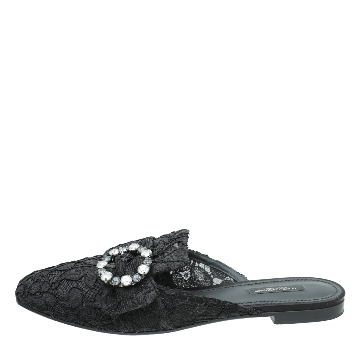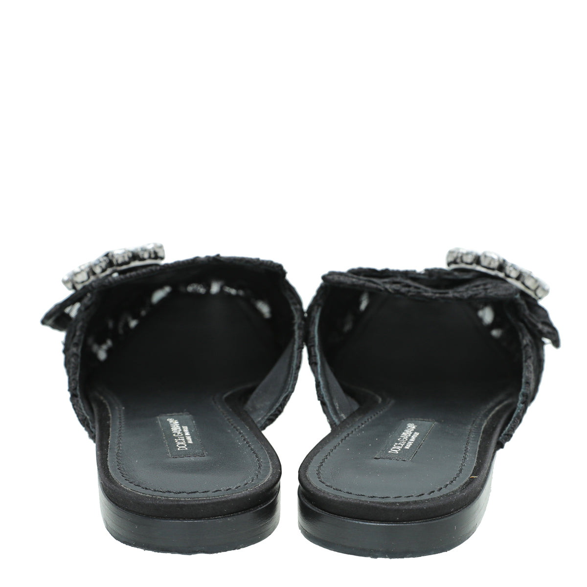 Dolce & Gabbana Black Lace Crystal Buckle Mules 39.5
