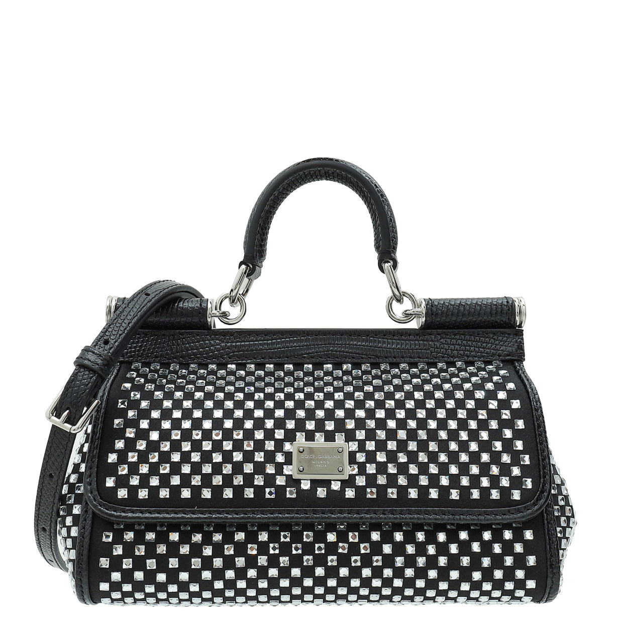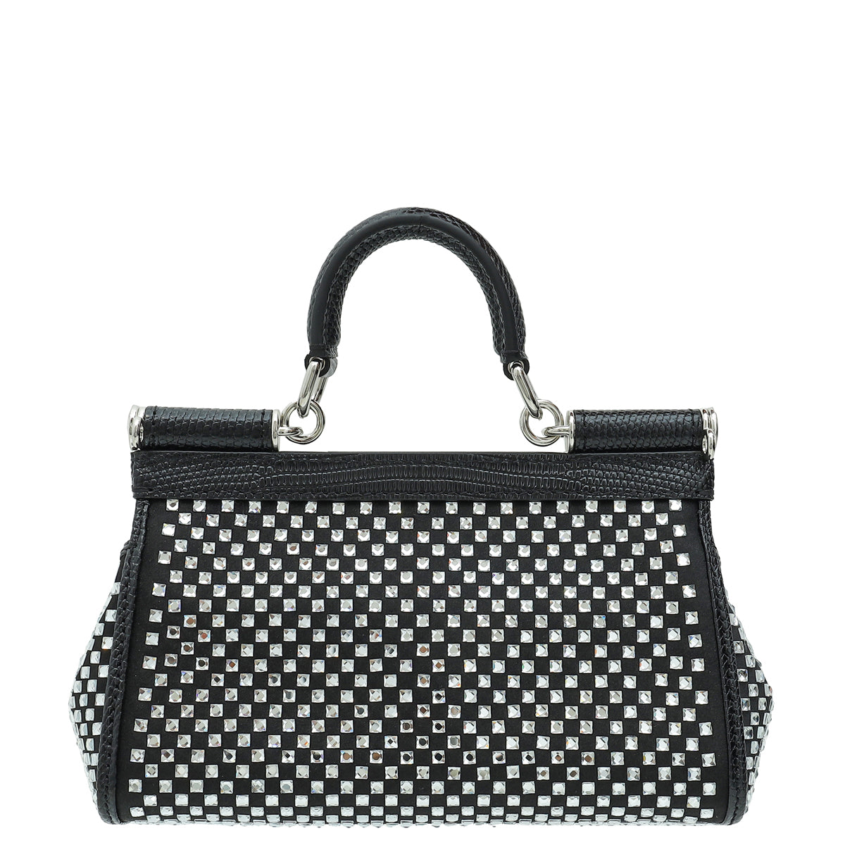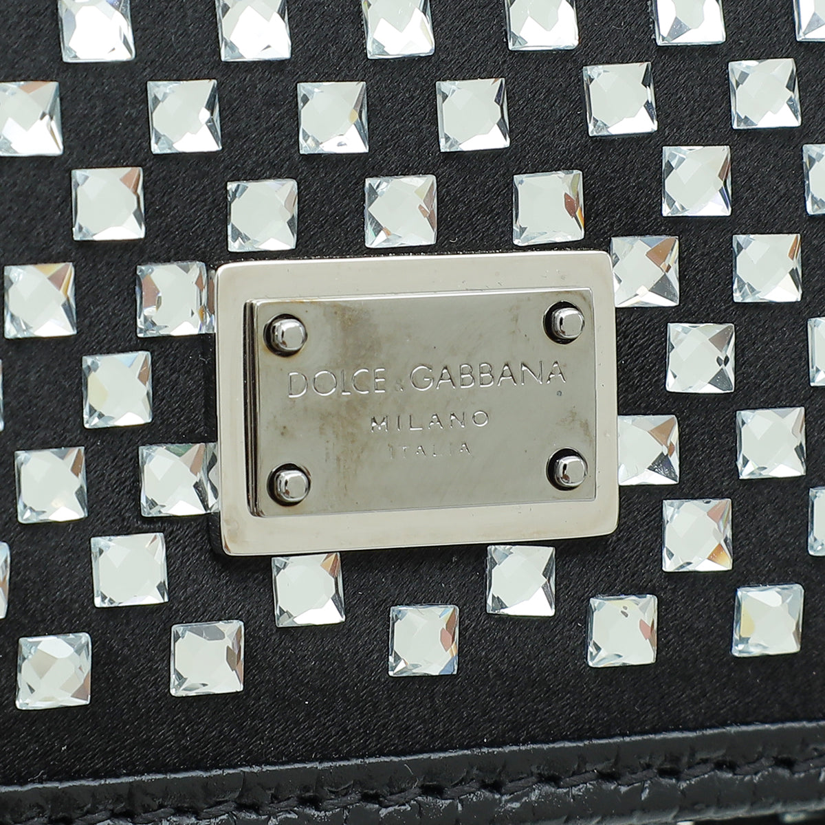 Dolce & Gabbana Black Sicily Crystal Embellished Top Handle Small Bag