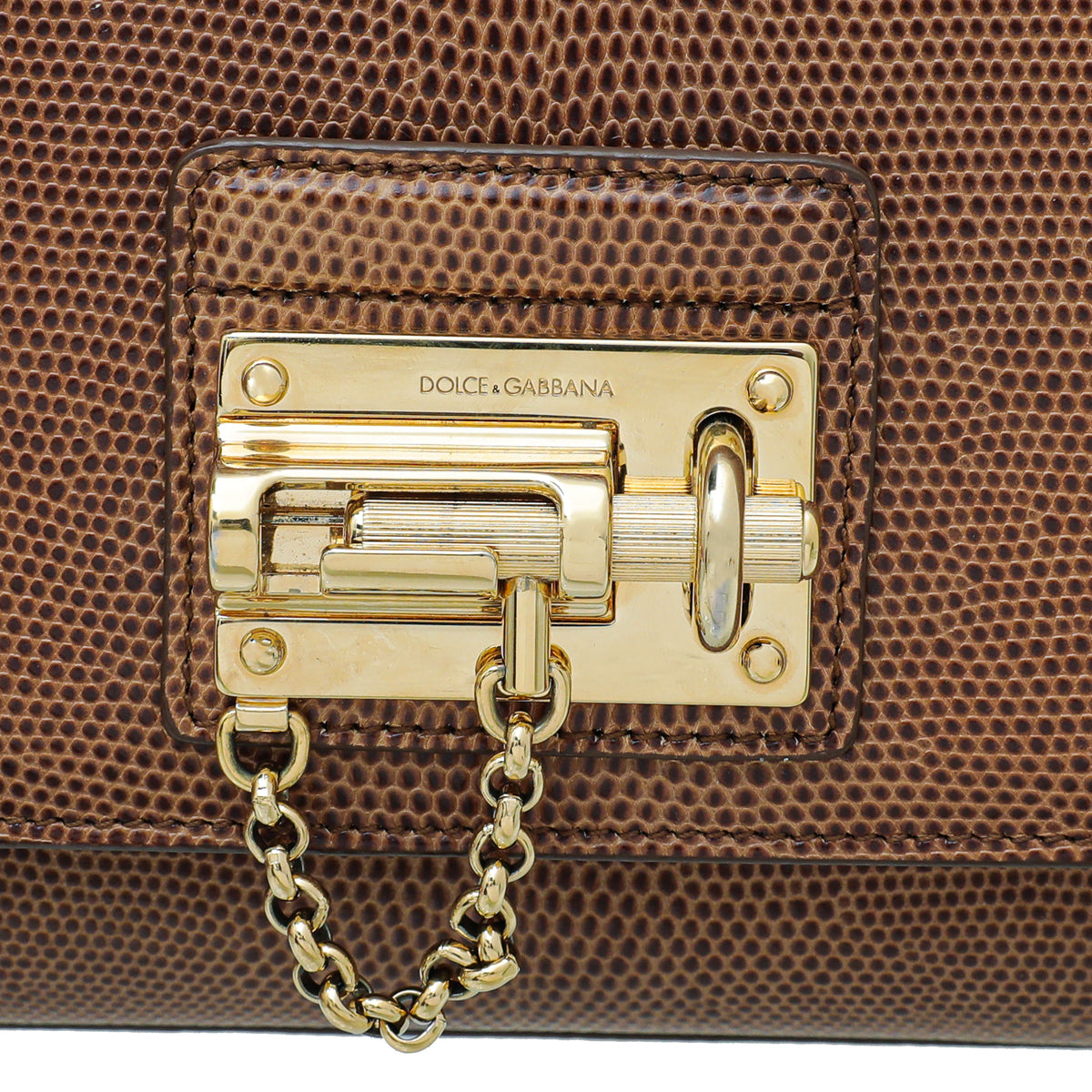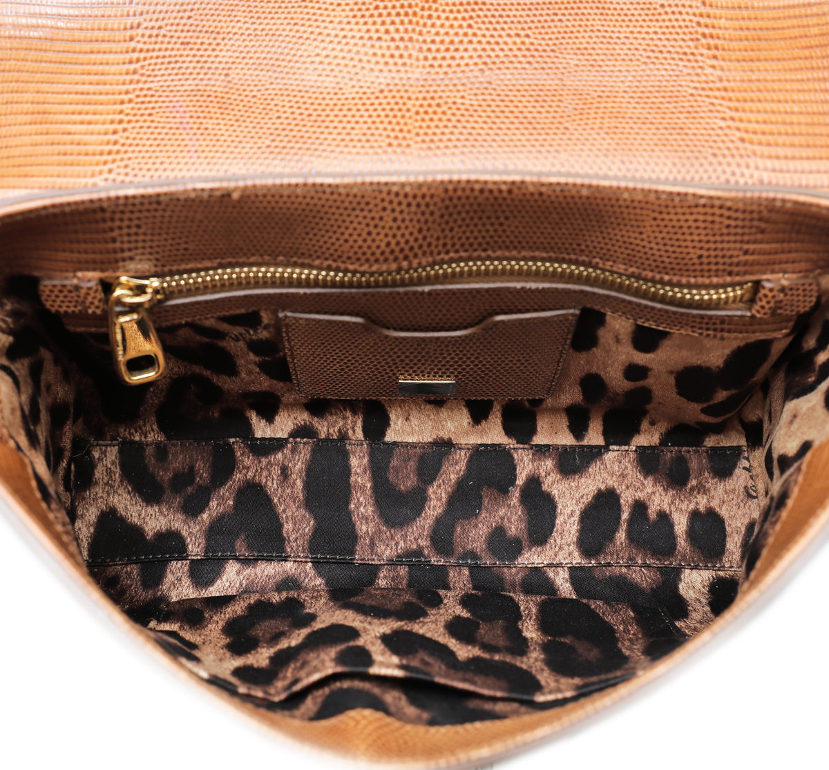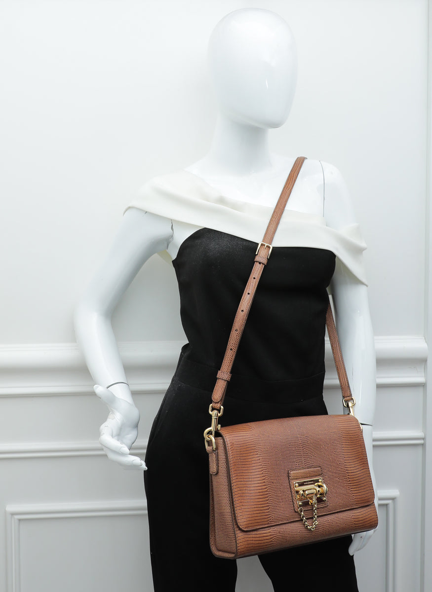Dolce & Gabbana Browm Lizard Print Miss Monica Medium Shoulder Bag