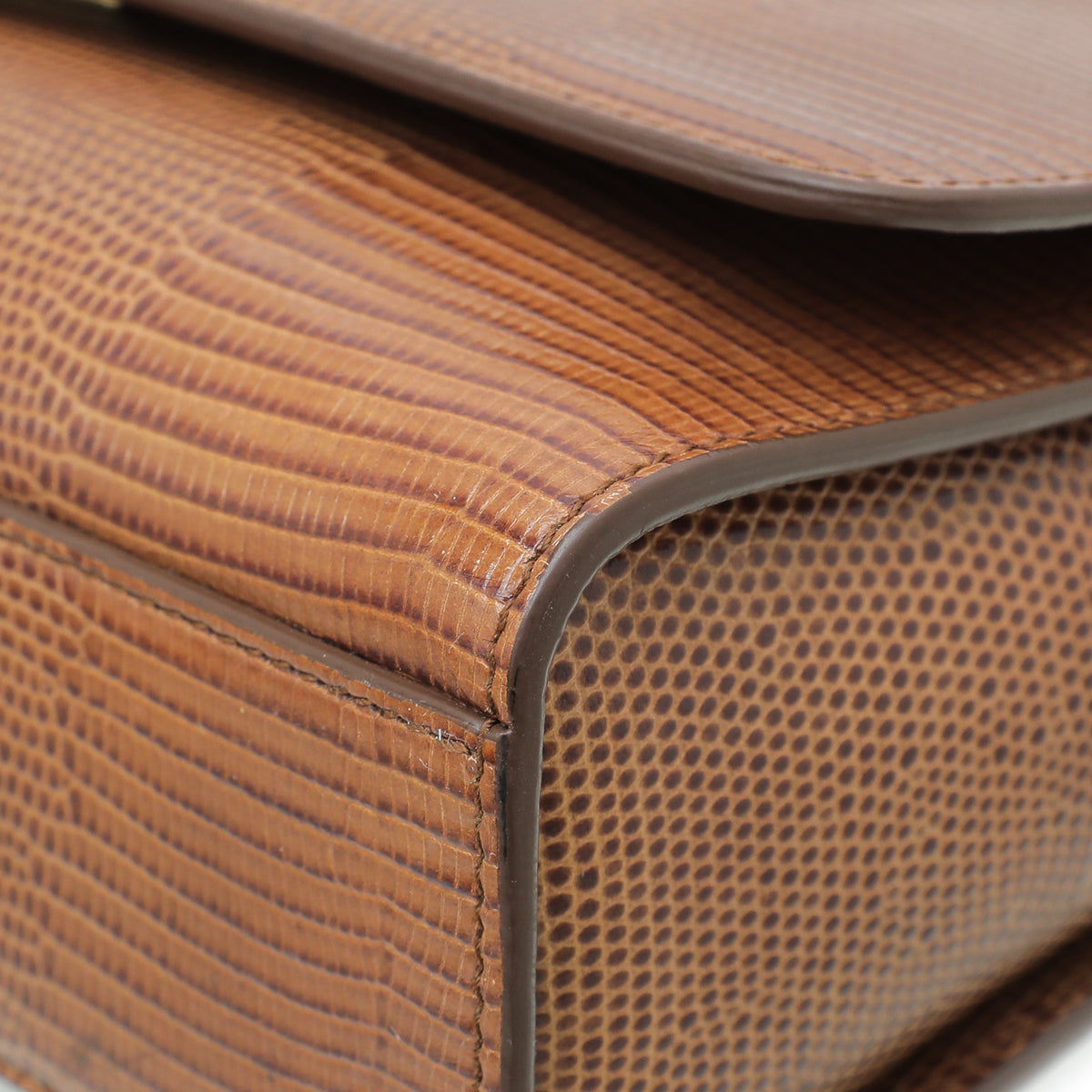 Material: Browm Lizard Print Embossed Calfskin Leather and Interior Leopard Print
