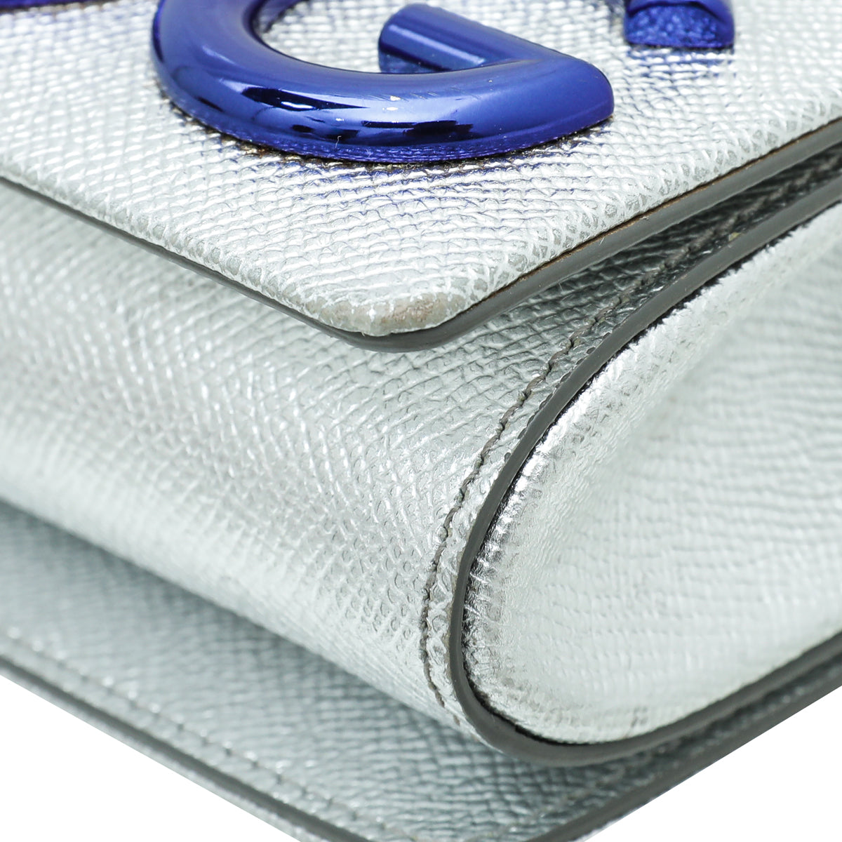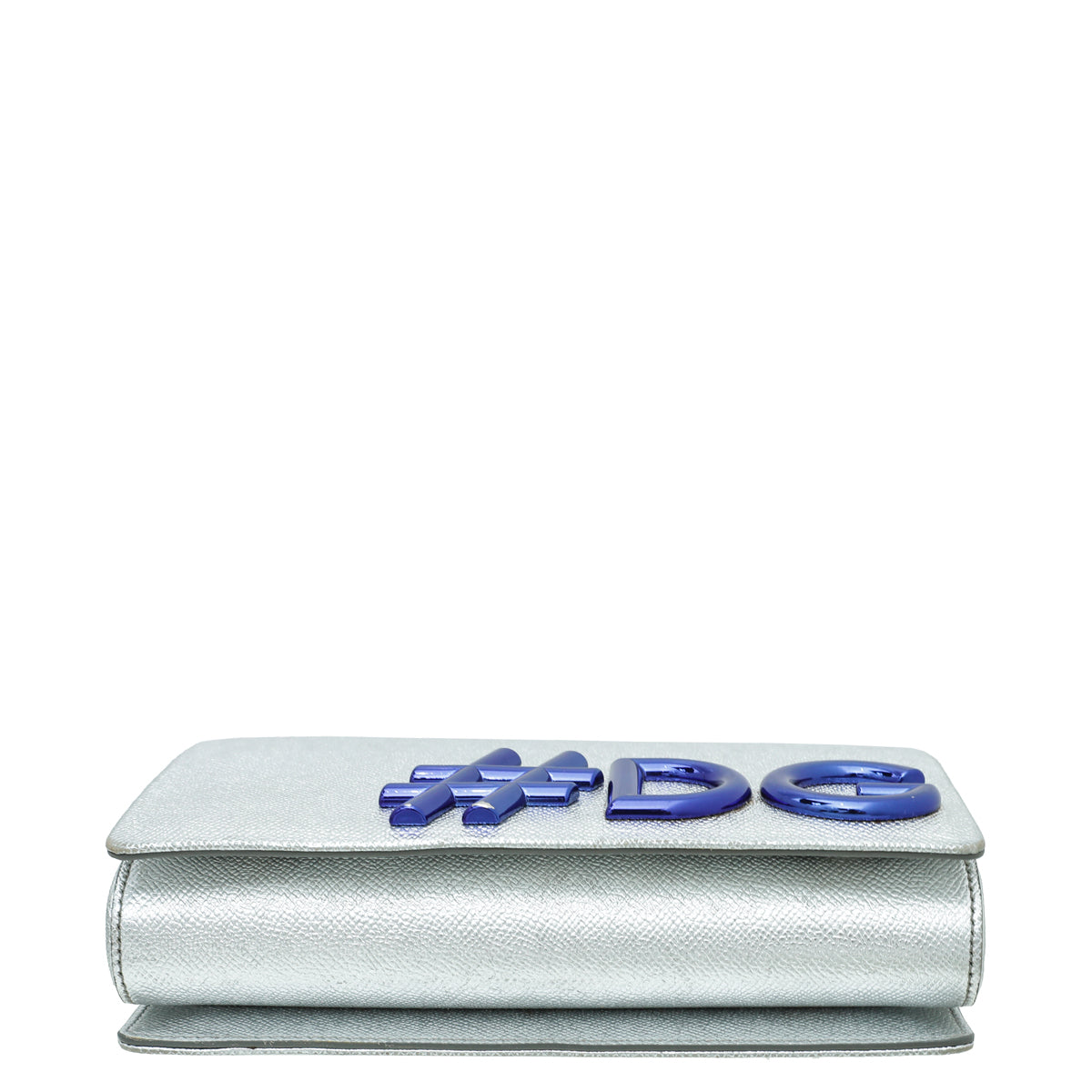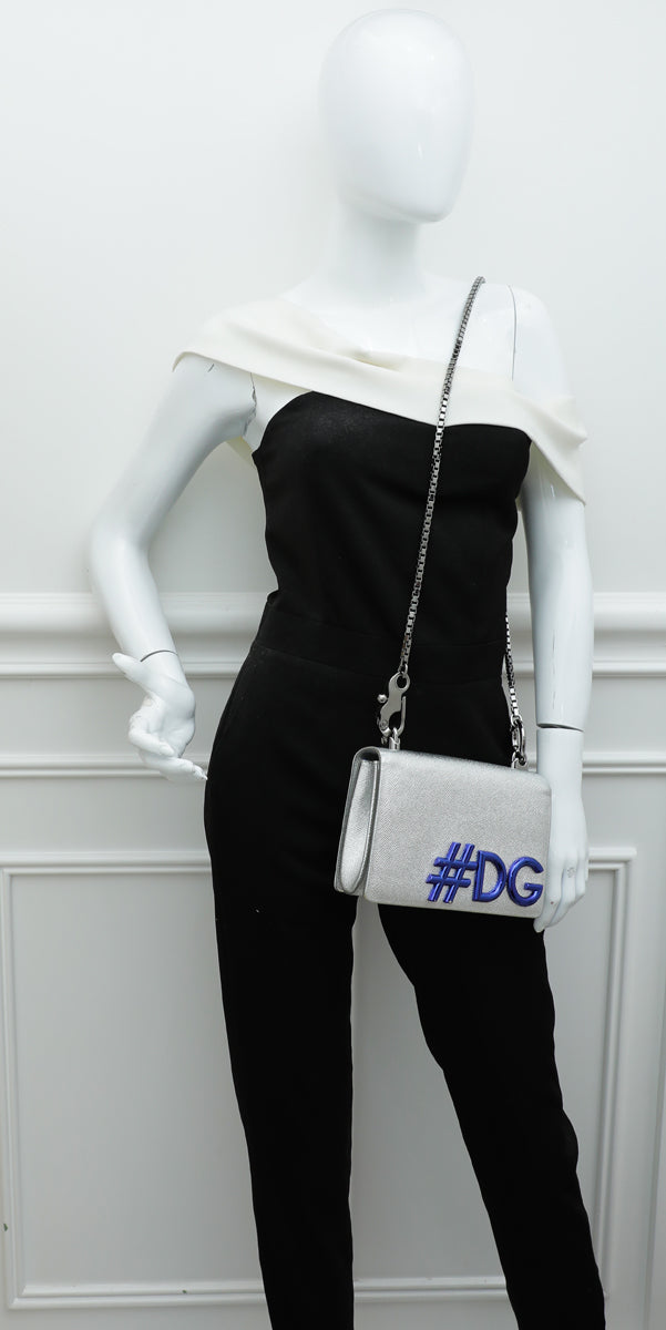 Dolce & Gabbana Metallic Silver DG Girls Hashtag Logo Metallic Chain Flap Bag