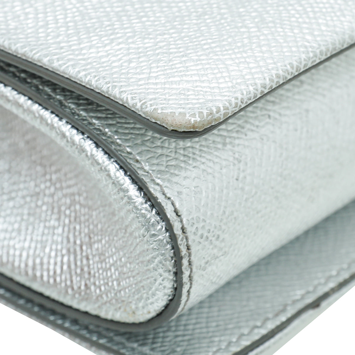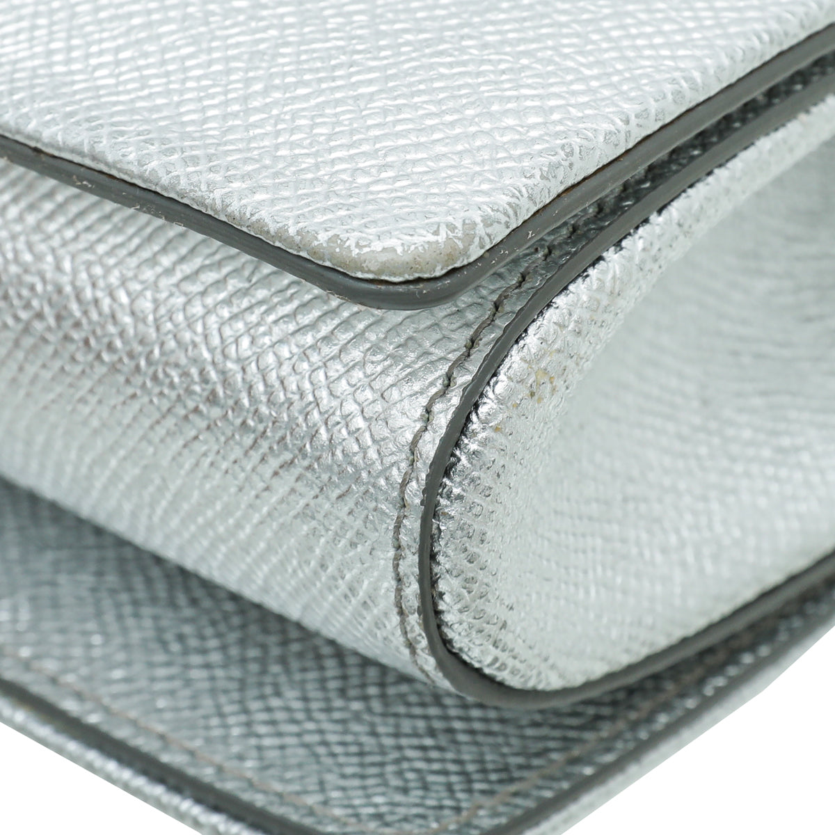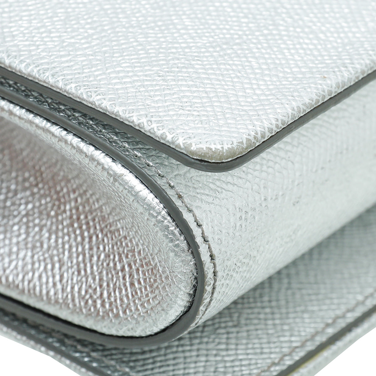 Dolce & Gabbana Metallic Silver DG Girls Hashtag Logo Metallic Chain Flap Bag