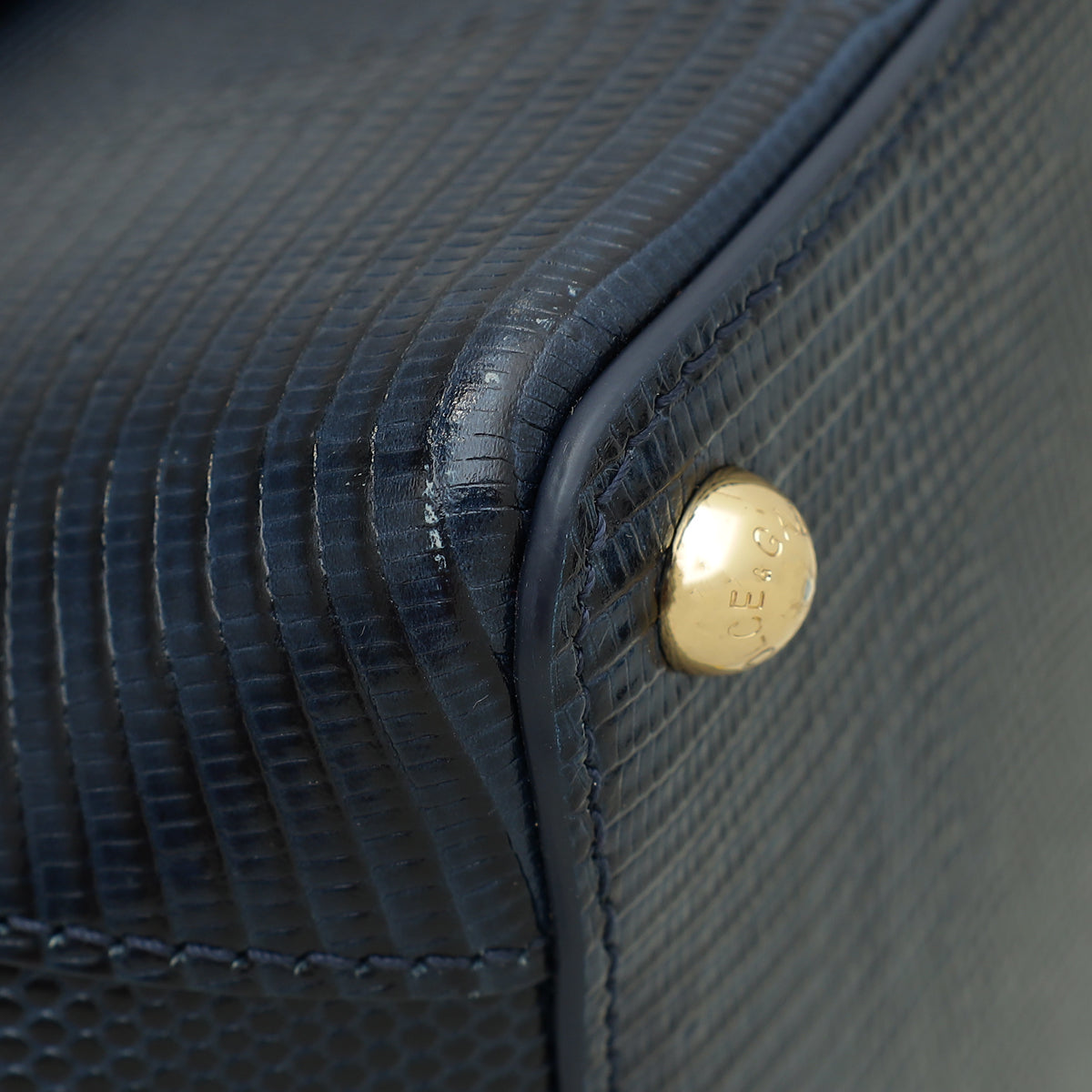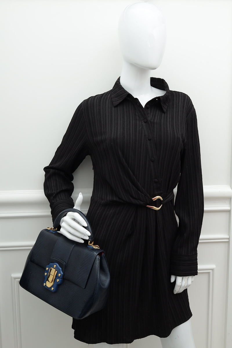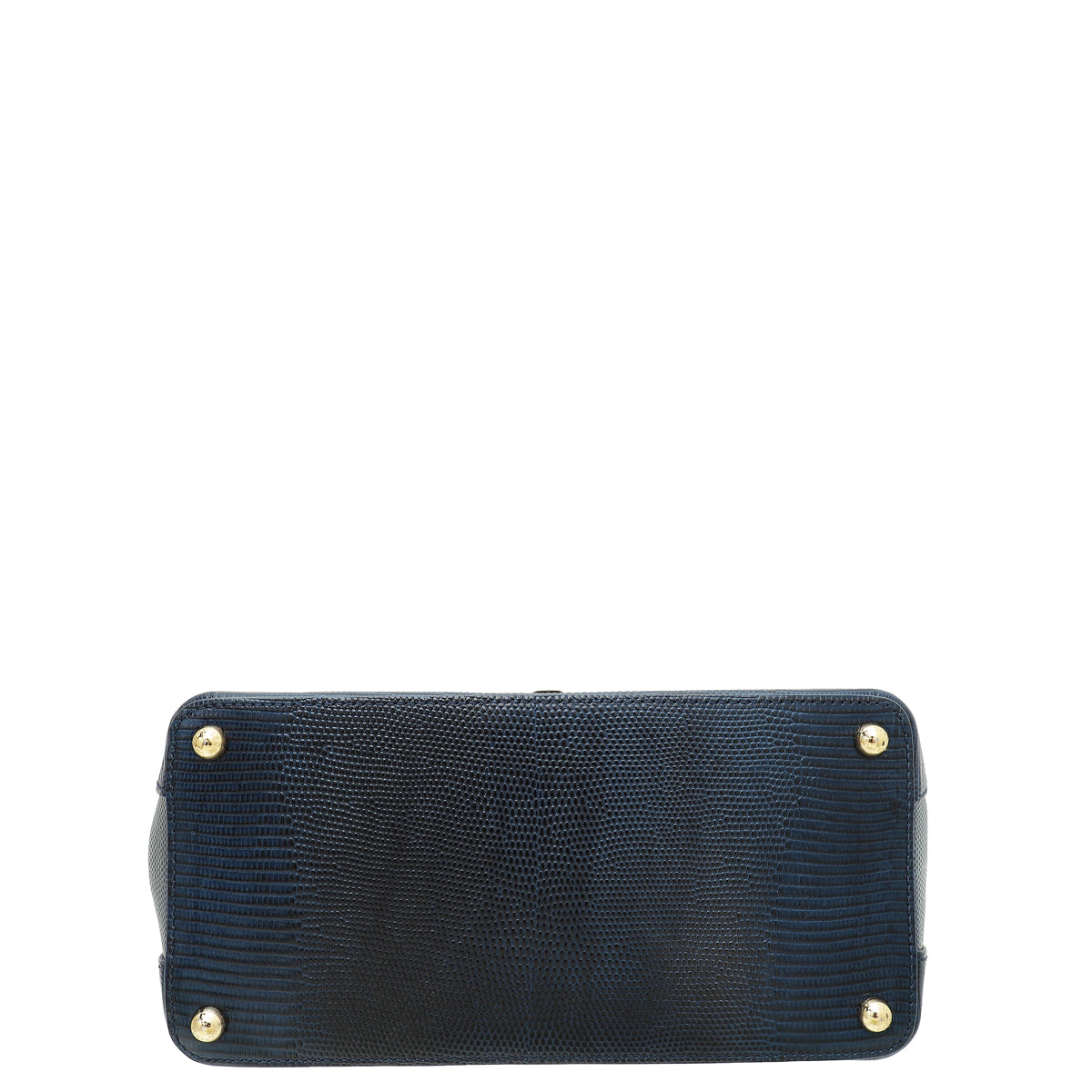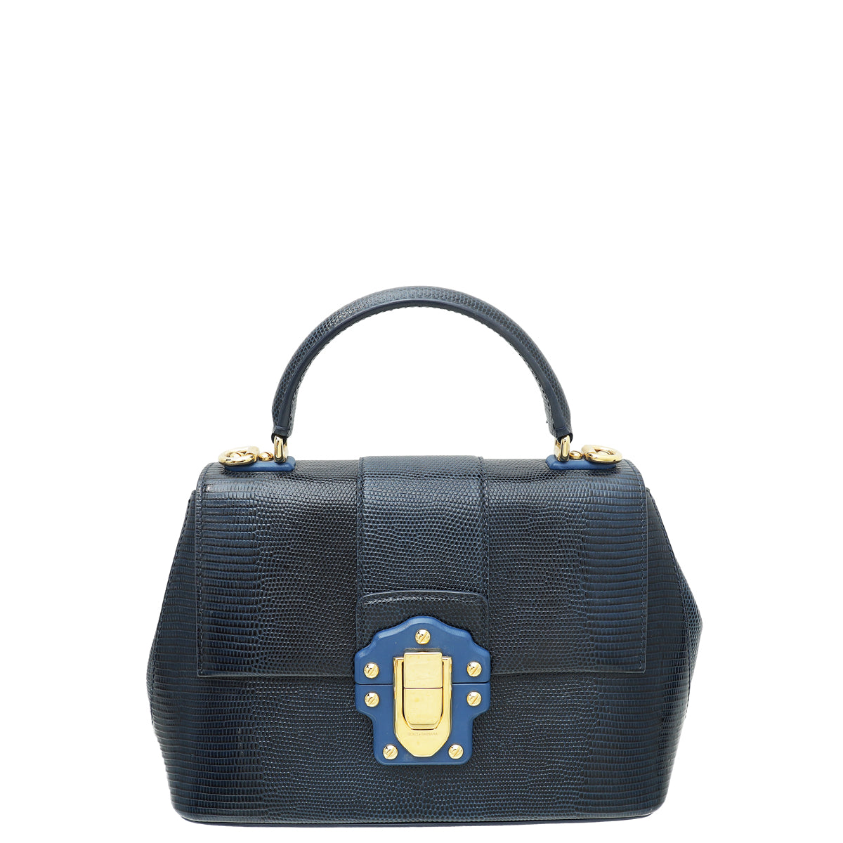 Dolce & Gabbana Navy Blue Lucia Iguana print Top Handle Bag