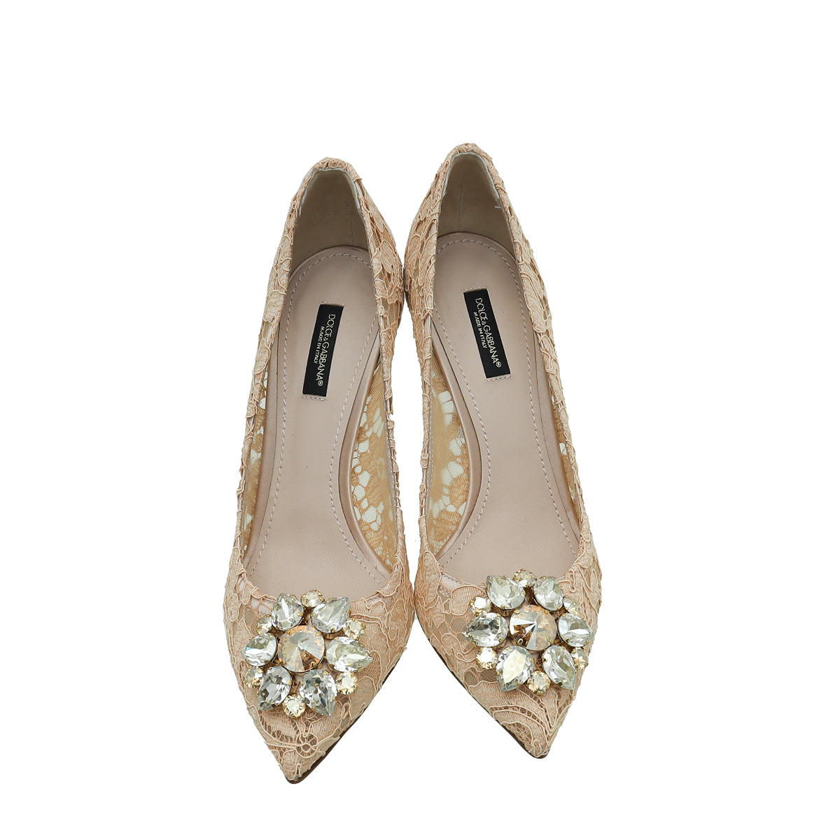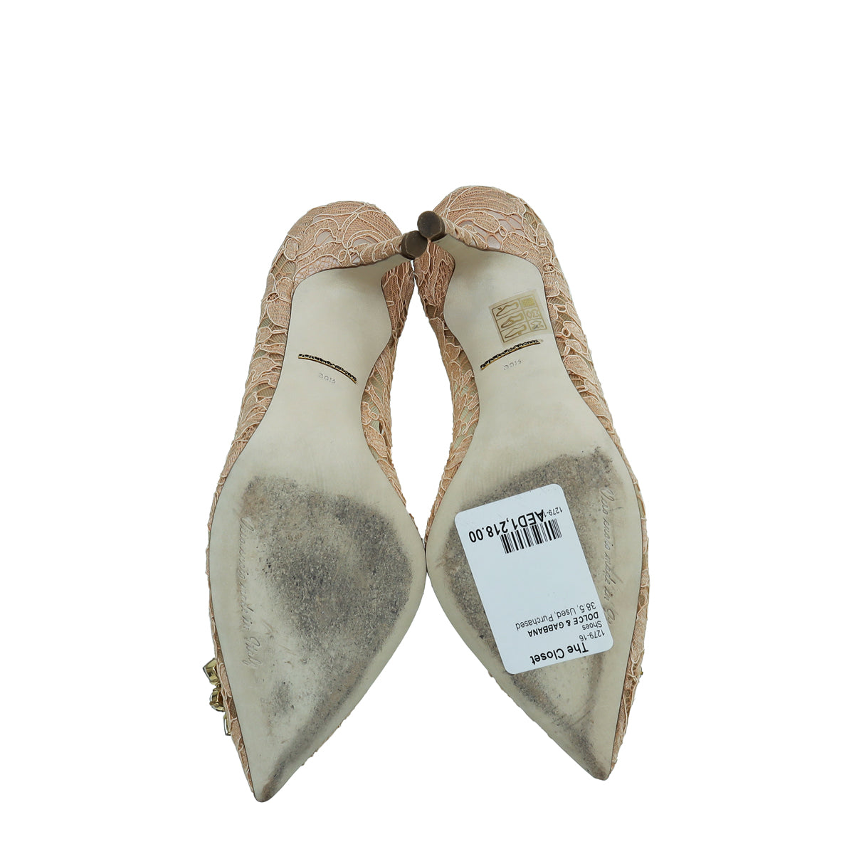 Dolce & Gabbana Peach Bellucci Lace Embellished Pump 38.5
