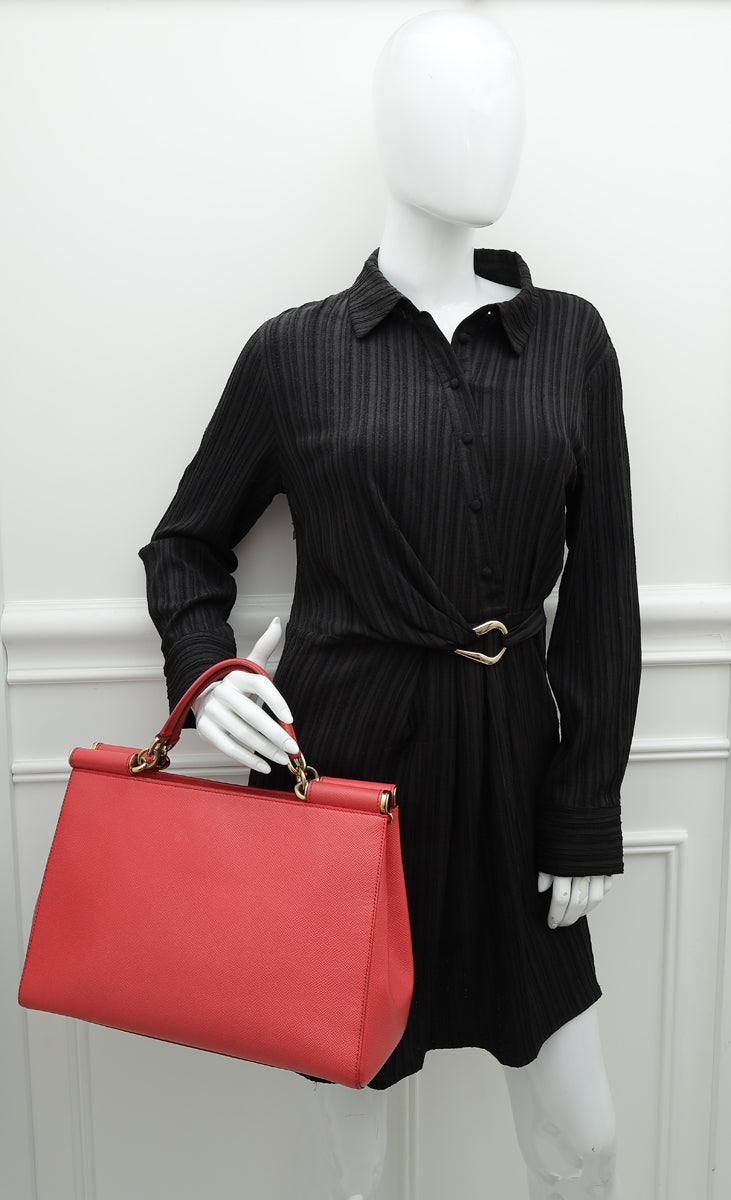 Dolce & Gabbana Red Sicily Shopper Large Bag