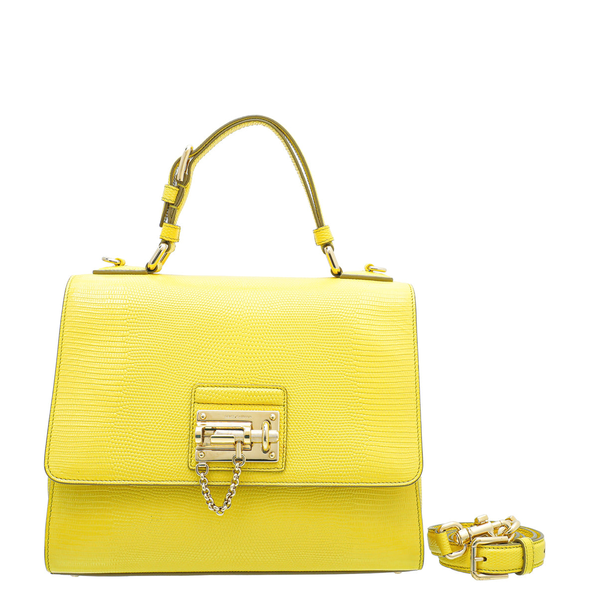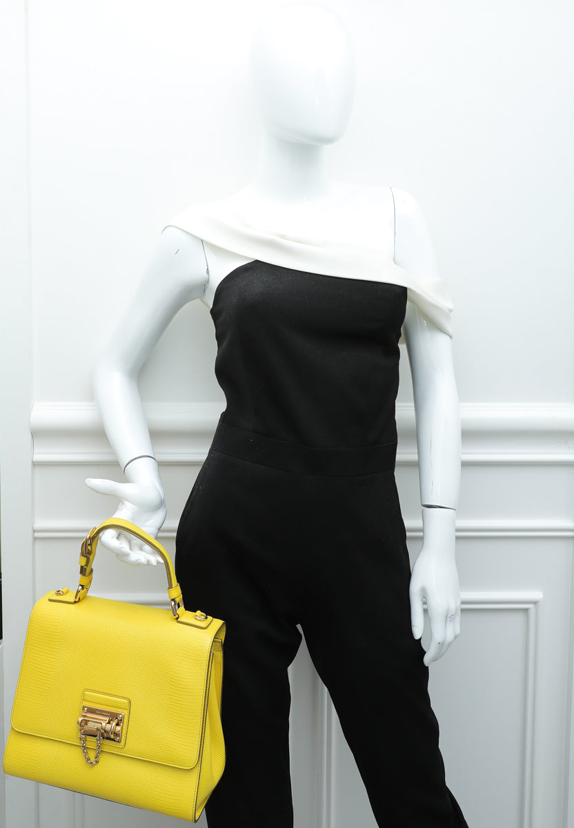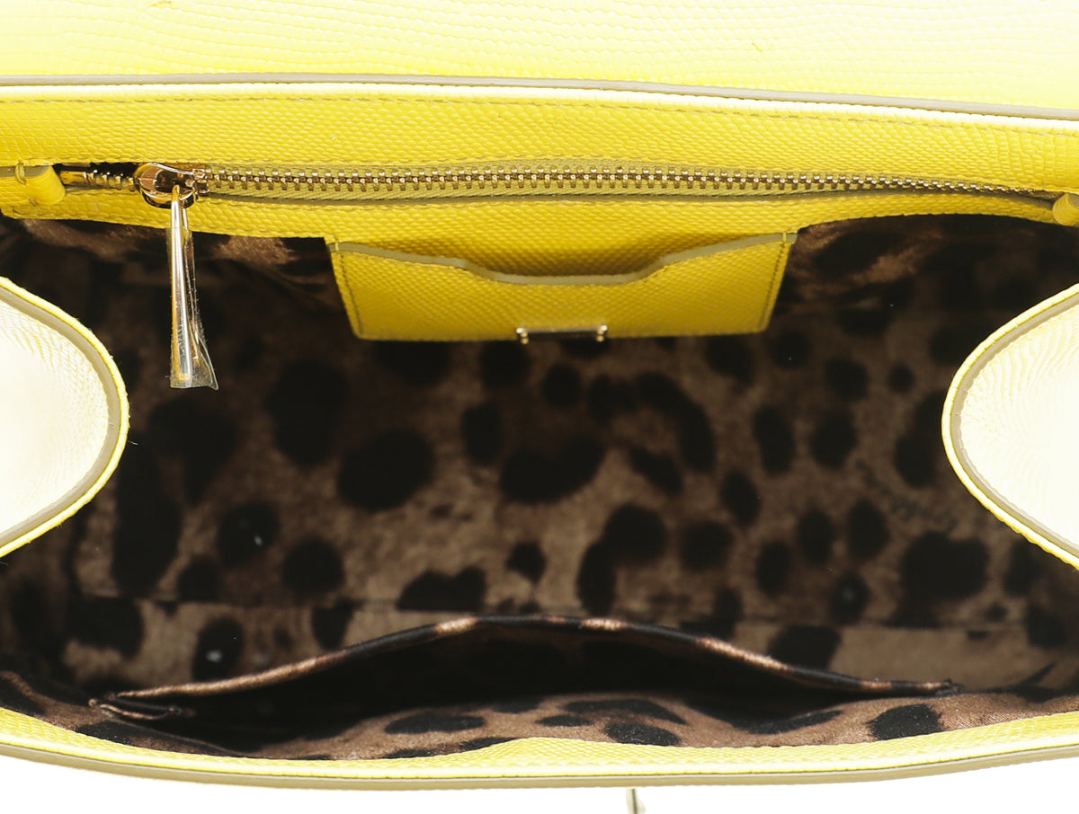 Dolce & Gabbana Yellow Lizard Print Miss Monica Top Handle Medium Bag