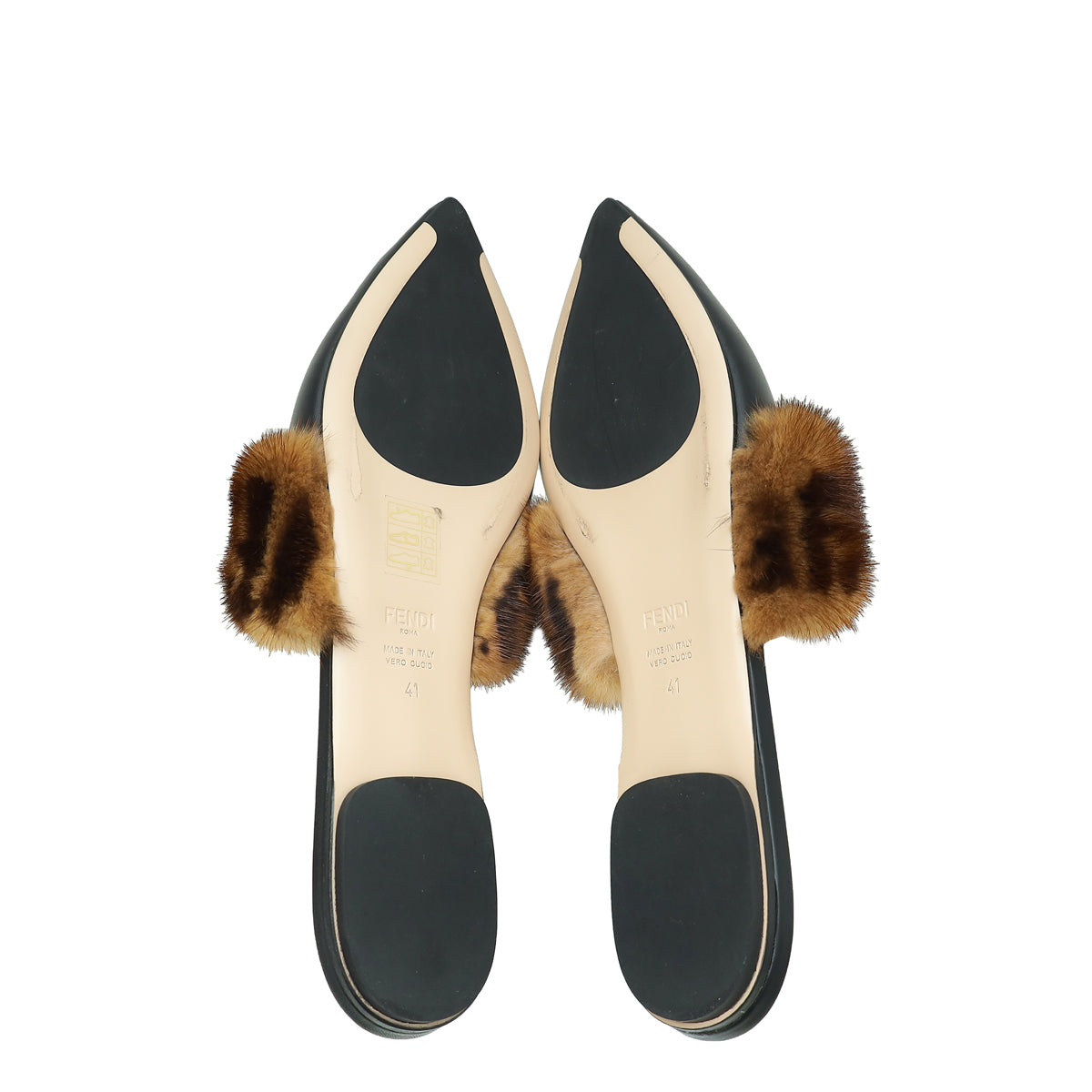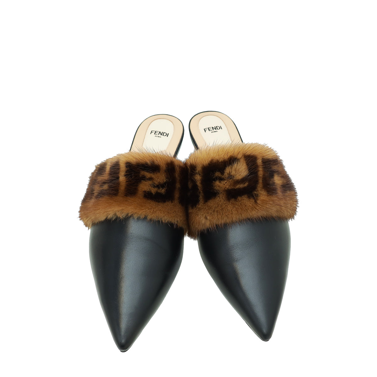 Fendi Bicolor FF Mink Fur Flat Mules 41