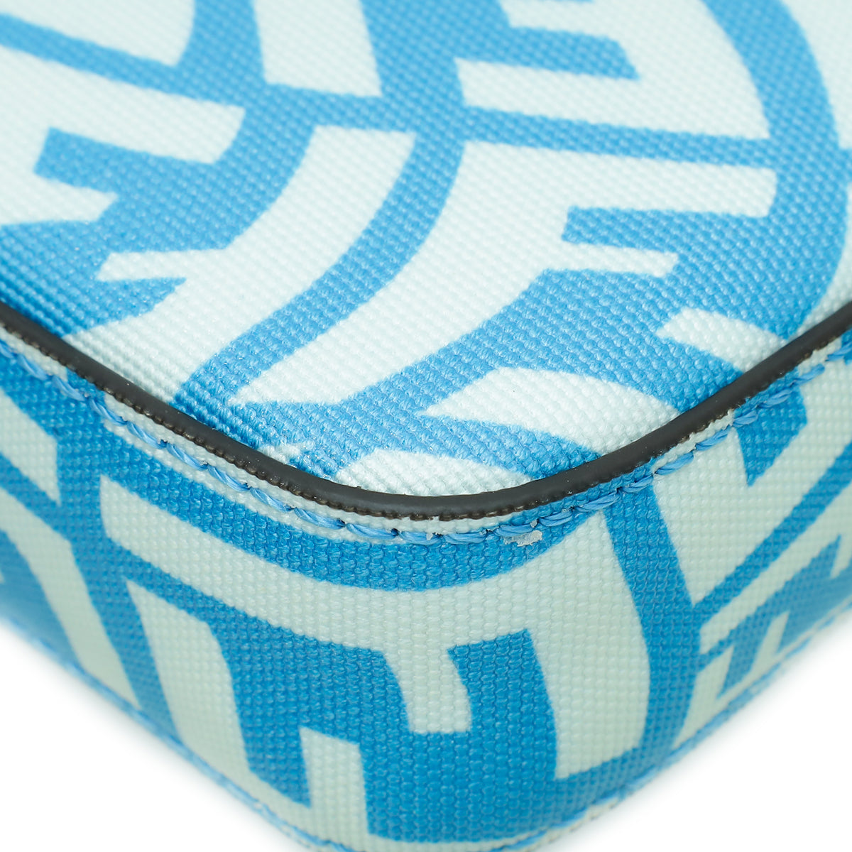 - Material: Cyber Blue/White Glazed Canvas with Leather Trim