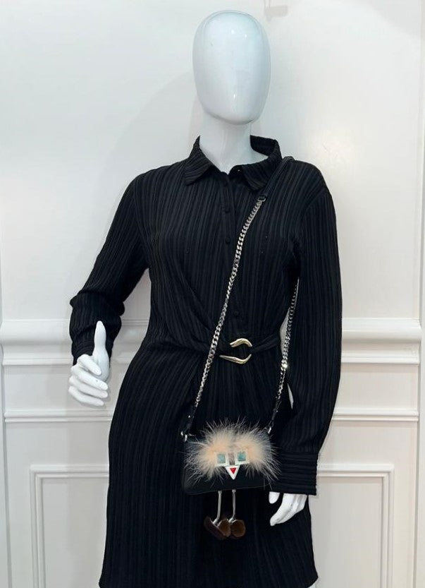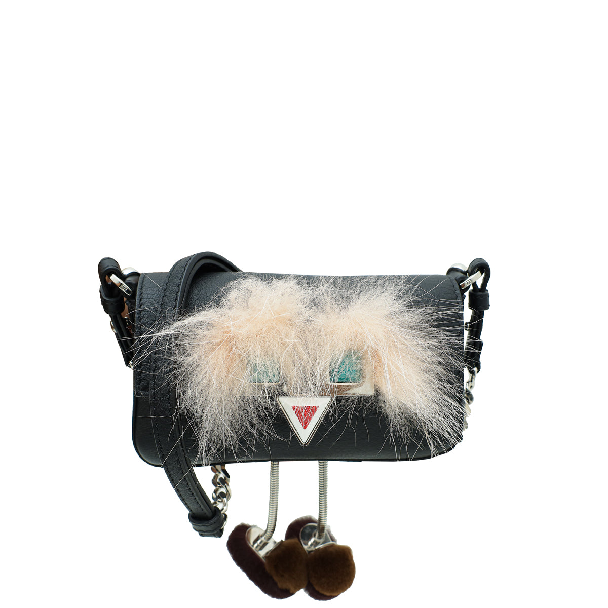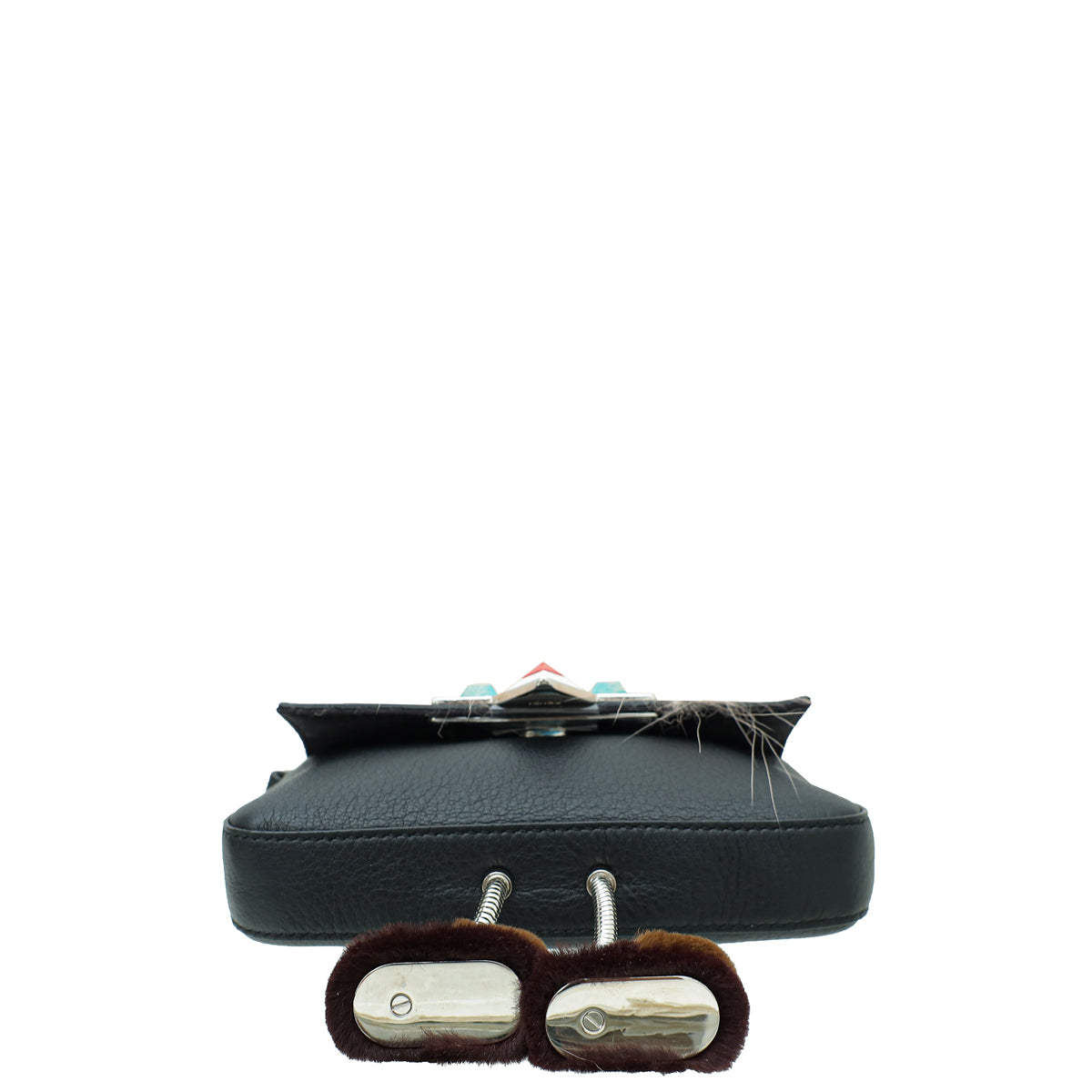 Fendi Black Micro Bug Baguette Bag W/ Fluffy Feet