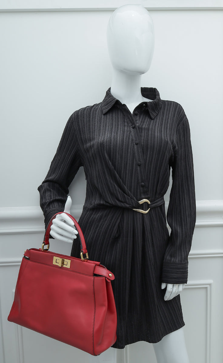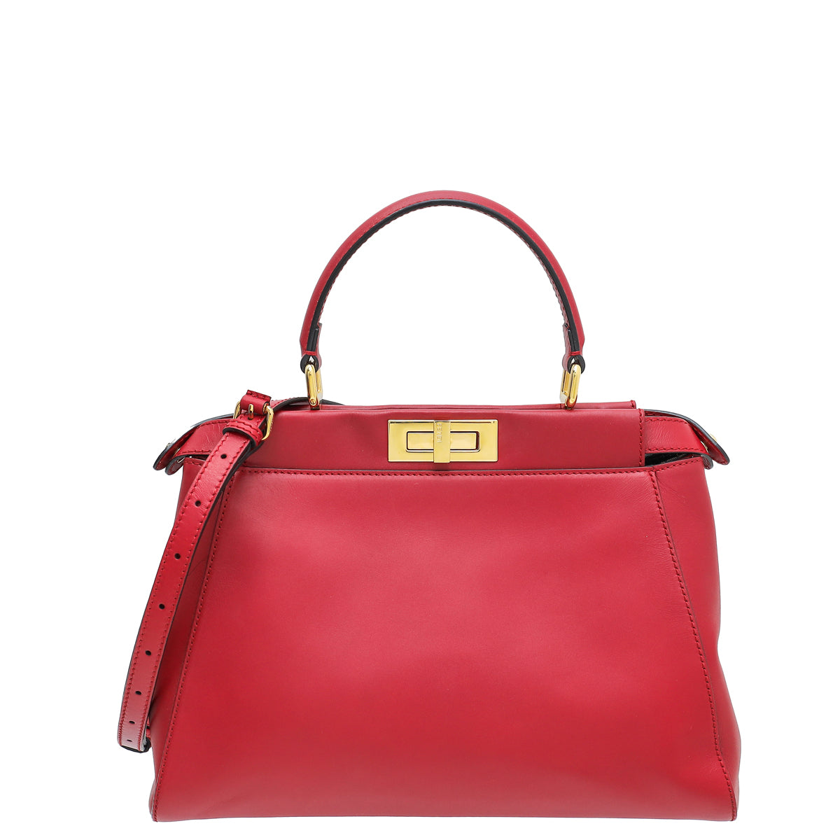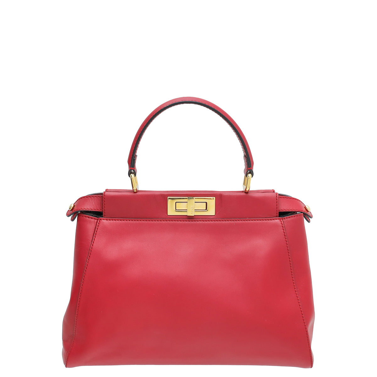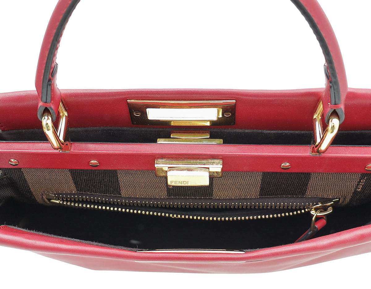 Fendi Red Iconic Peekaboo Regular Bag W /Pequin Lining