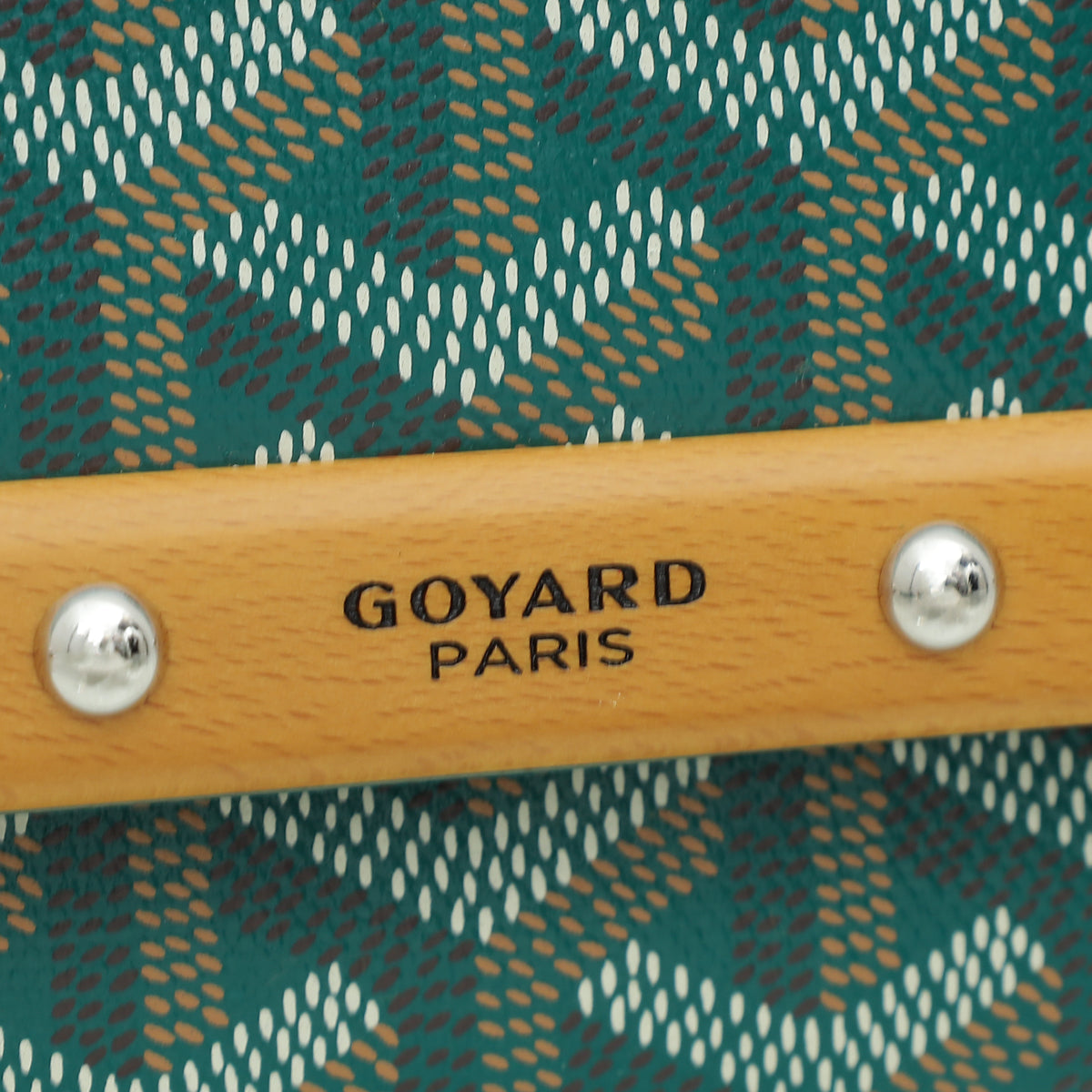Material: Green Coated Canvas with Wood and Leather Trim