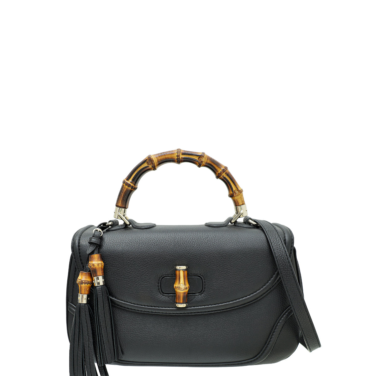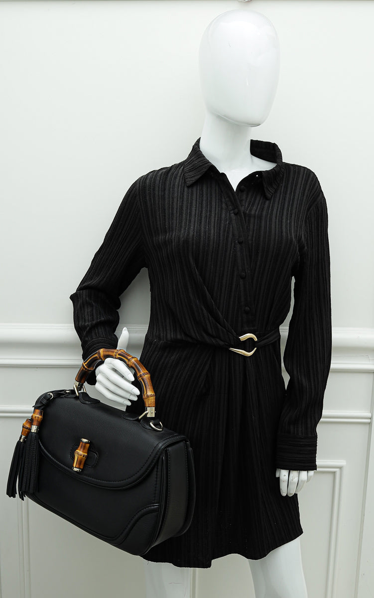 Gucci Black New Bamboo Top Handle Large Medium Bag