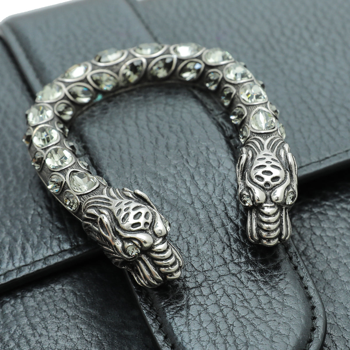 Material: Black Grained Calf Leather and Tiger Head Closure with Crystals