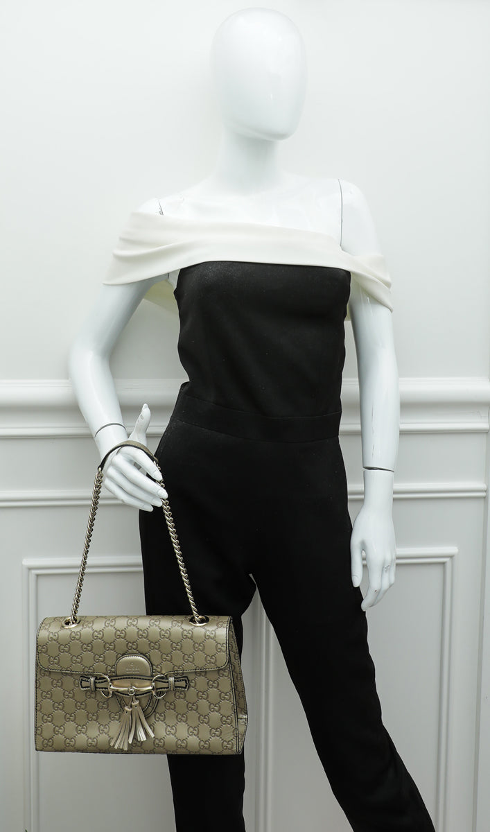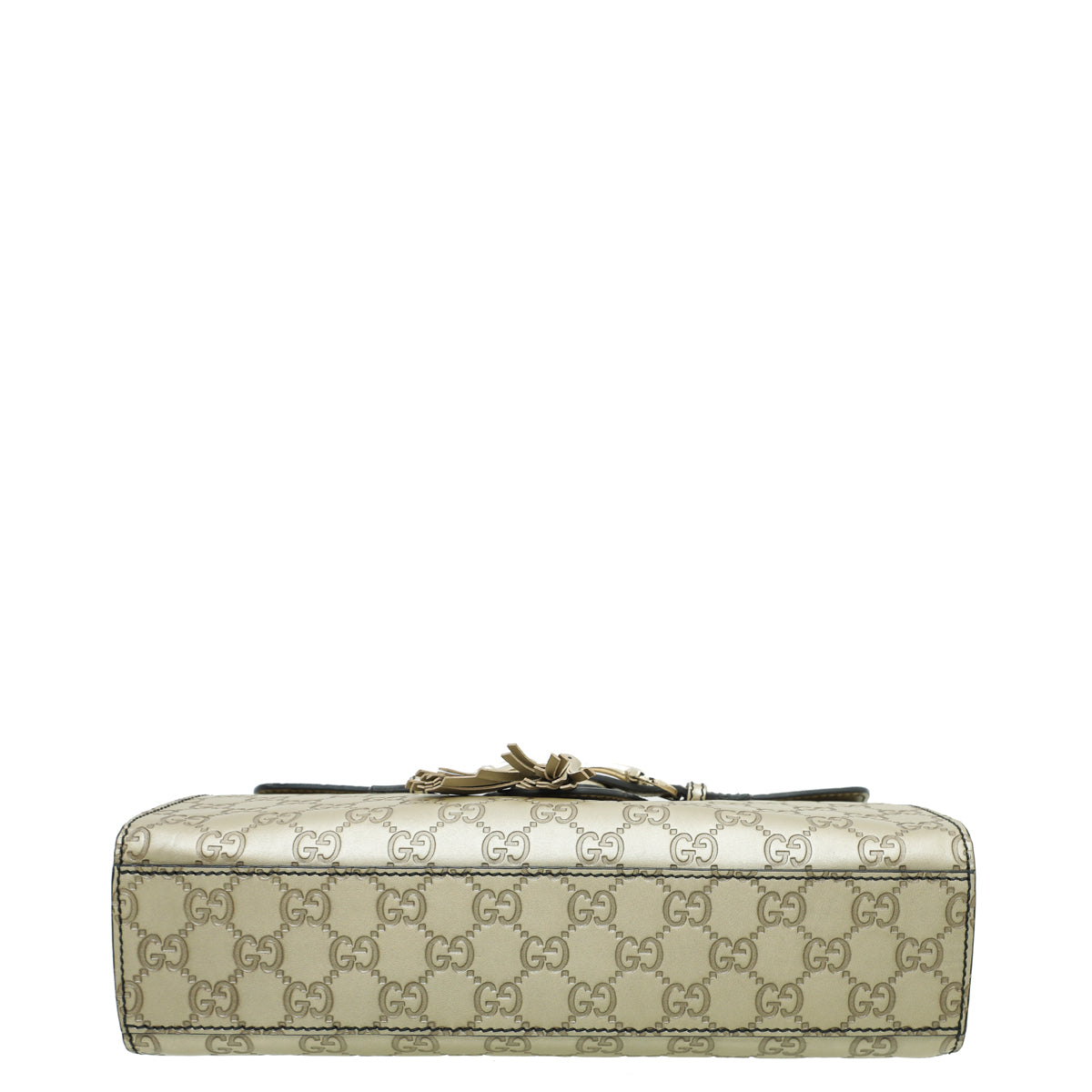 Gucci Metallic Champagne GG Guccissima Emily Medium Bag
