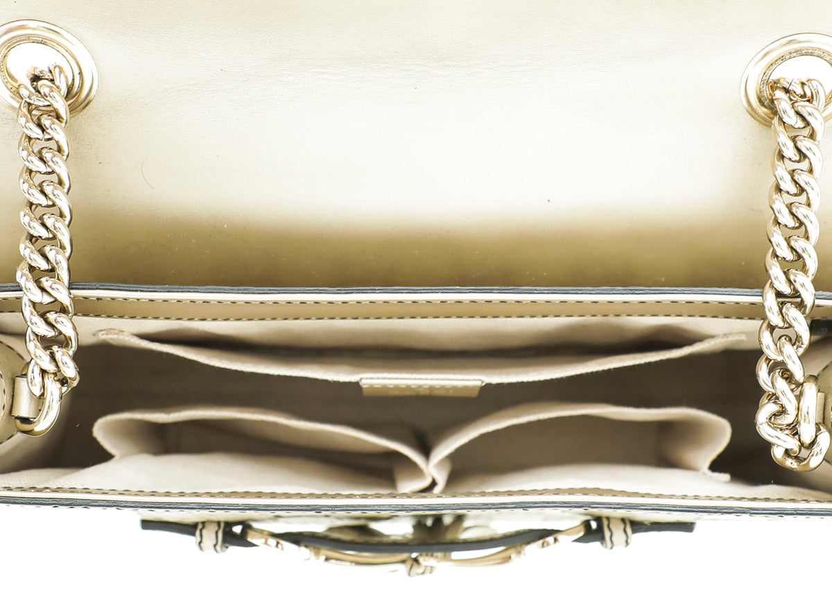 Material: Metallic Champagne GG Guccissima Leather with Smooth Leather Trim