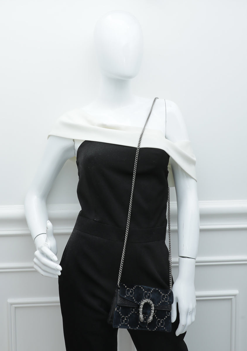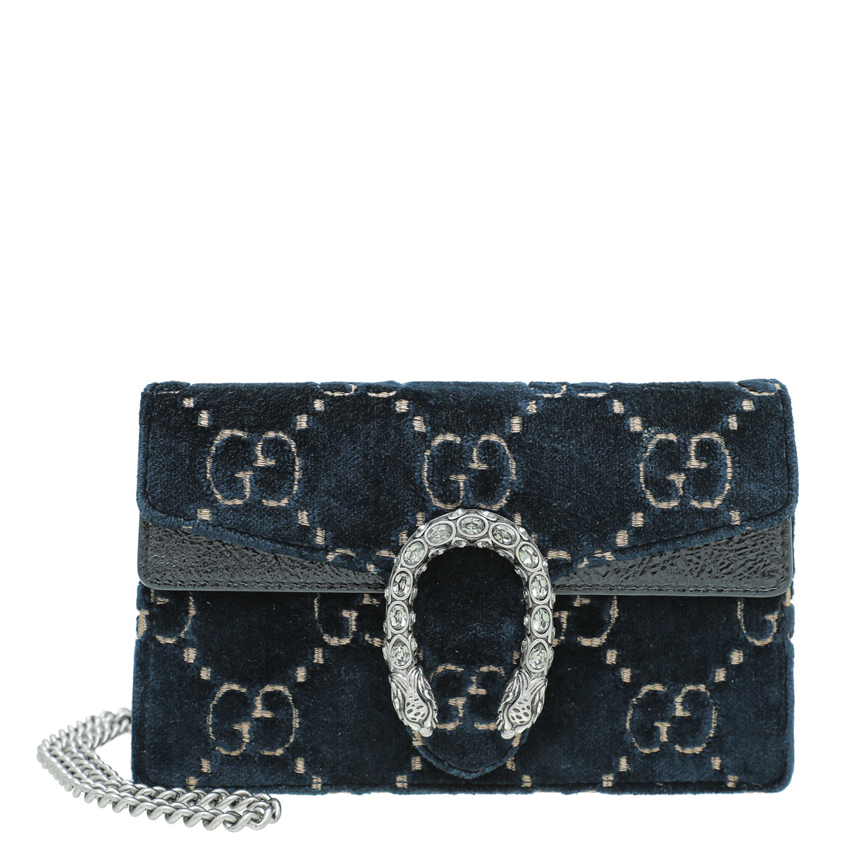 Gucci Navy Blue Velvet Crystal Dionysus Super Mini Bag
