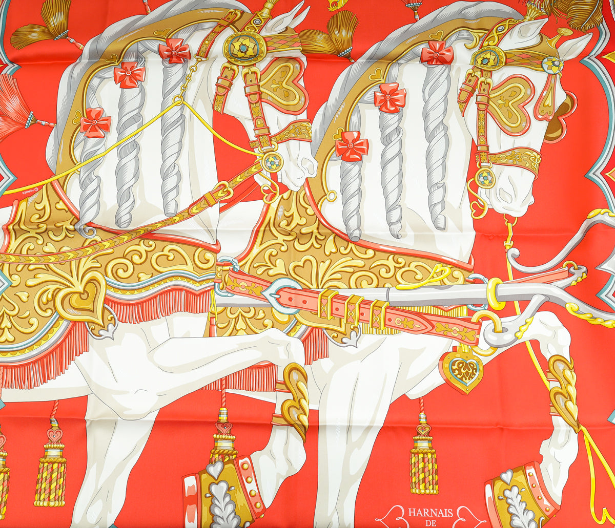 Hermes Tricolor Harnais De Coeur Silk Scarf 90