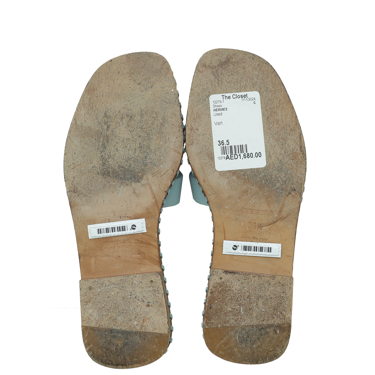 Hermes Vert D'eau Oran Braided Sole Edge Sandal 36.5