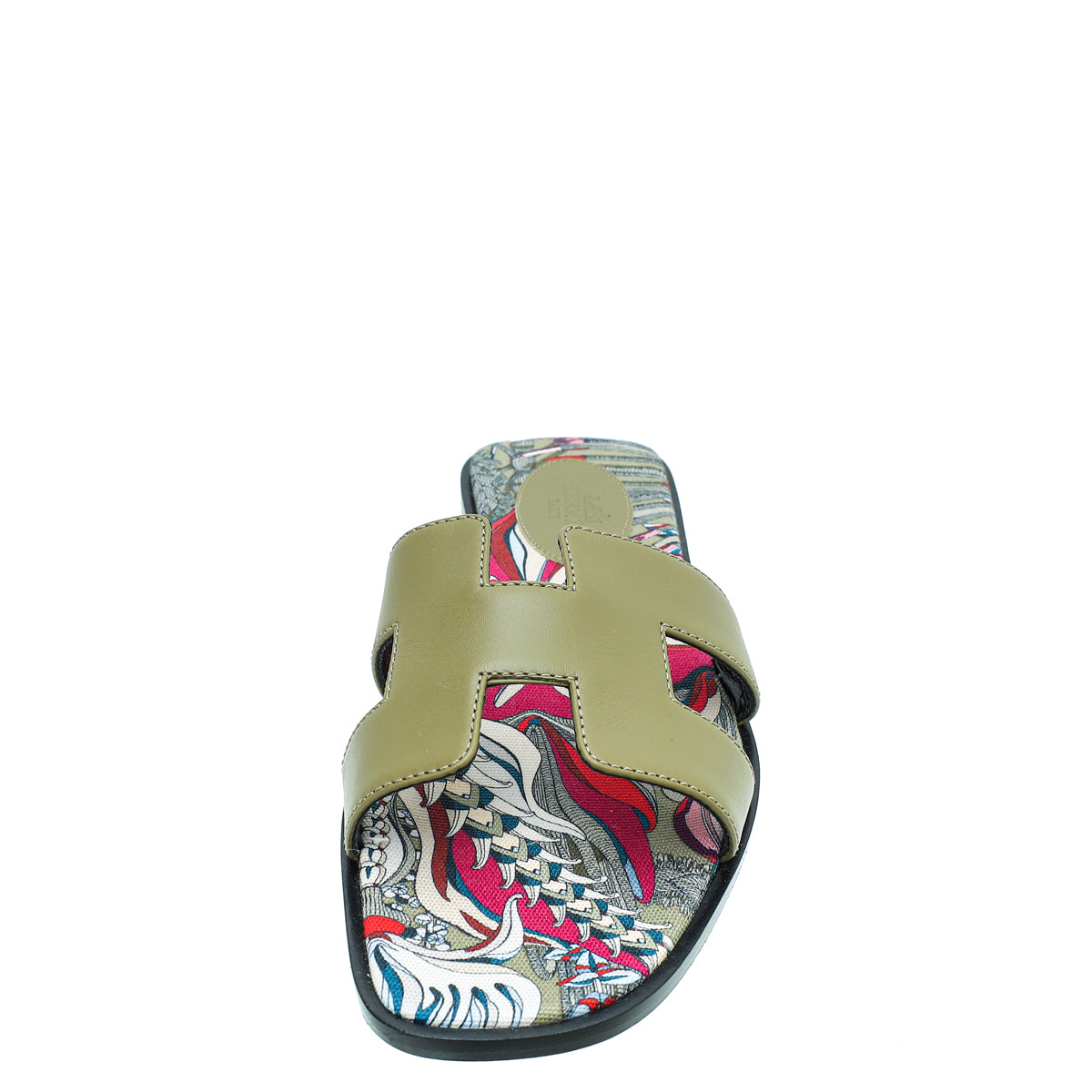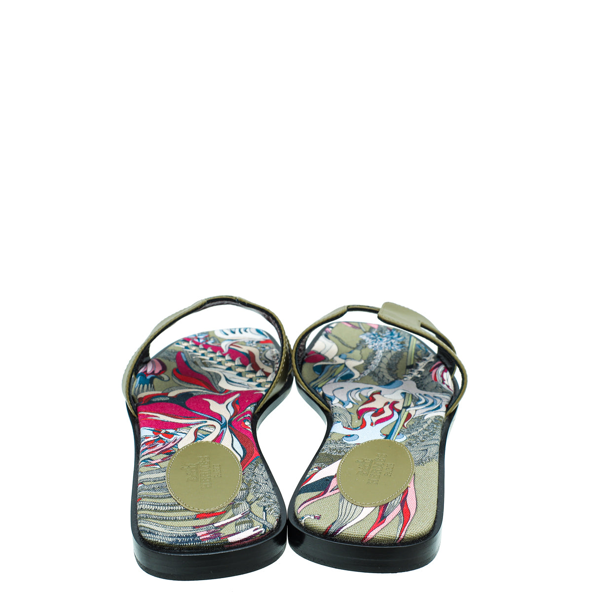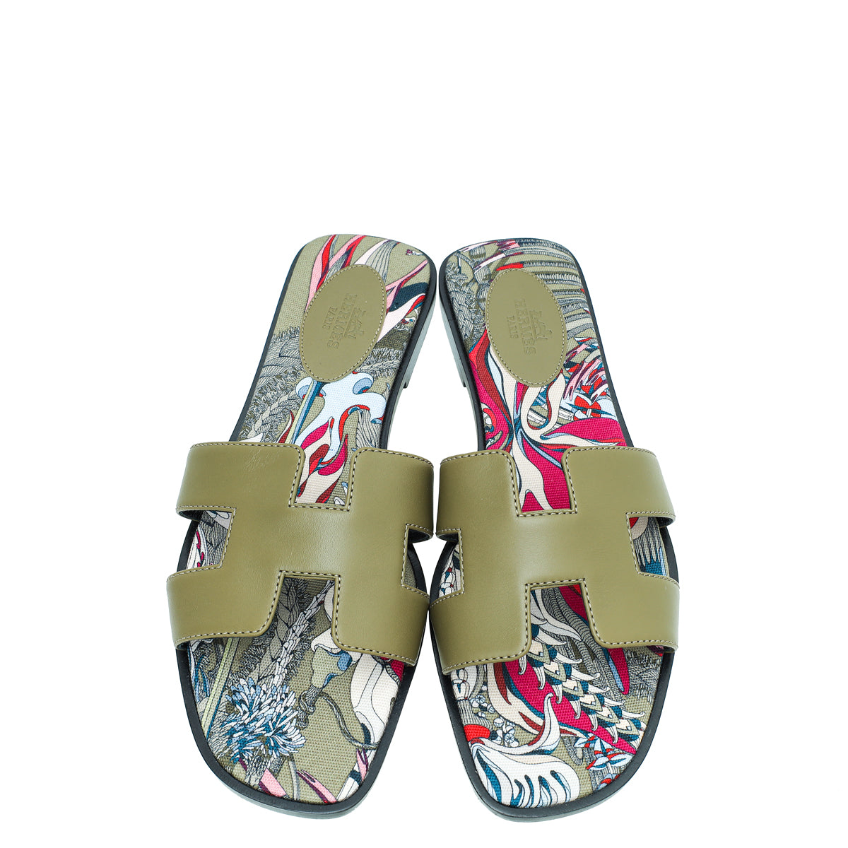 Hermes Vert Veronese Oran "Fantaisie Botanique" Printed Sandal 39