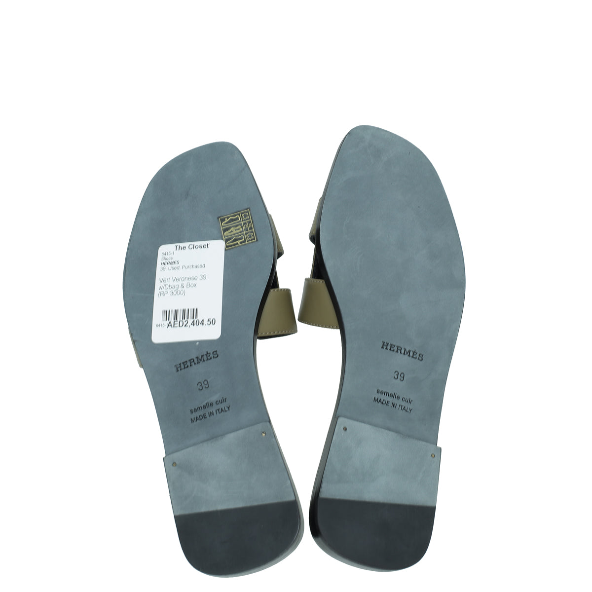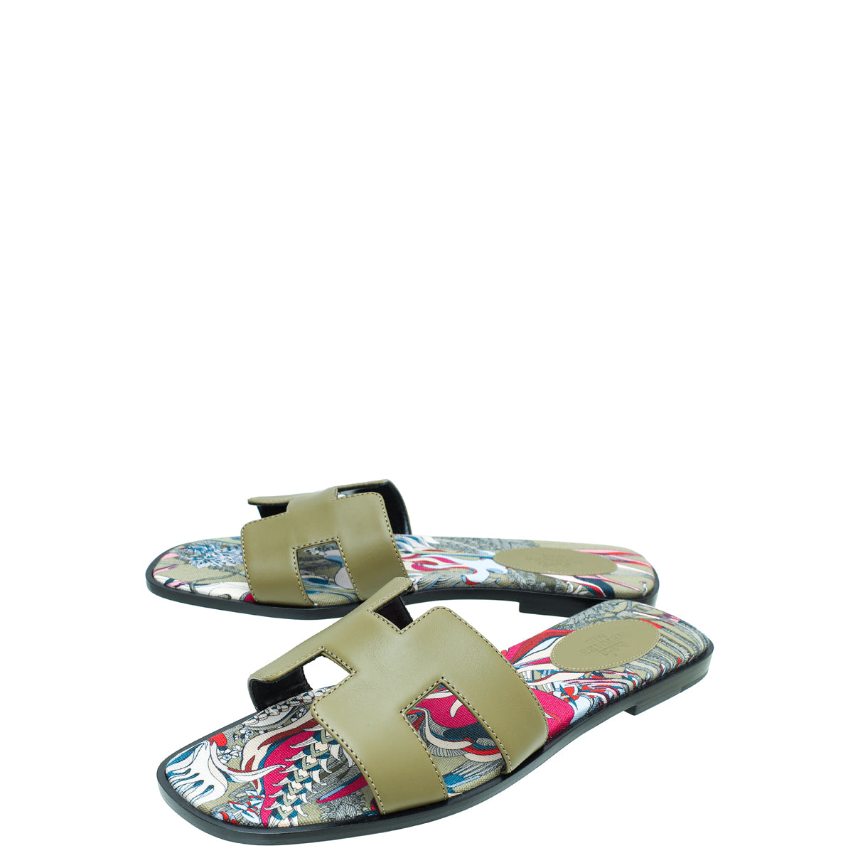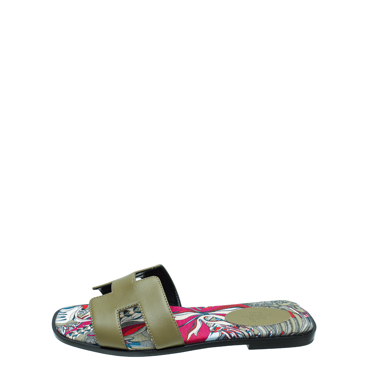 Hermes Vert Veronese Oran "Fantaisie Botanique" Printed Sandal 39