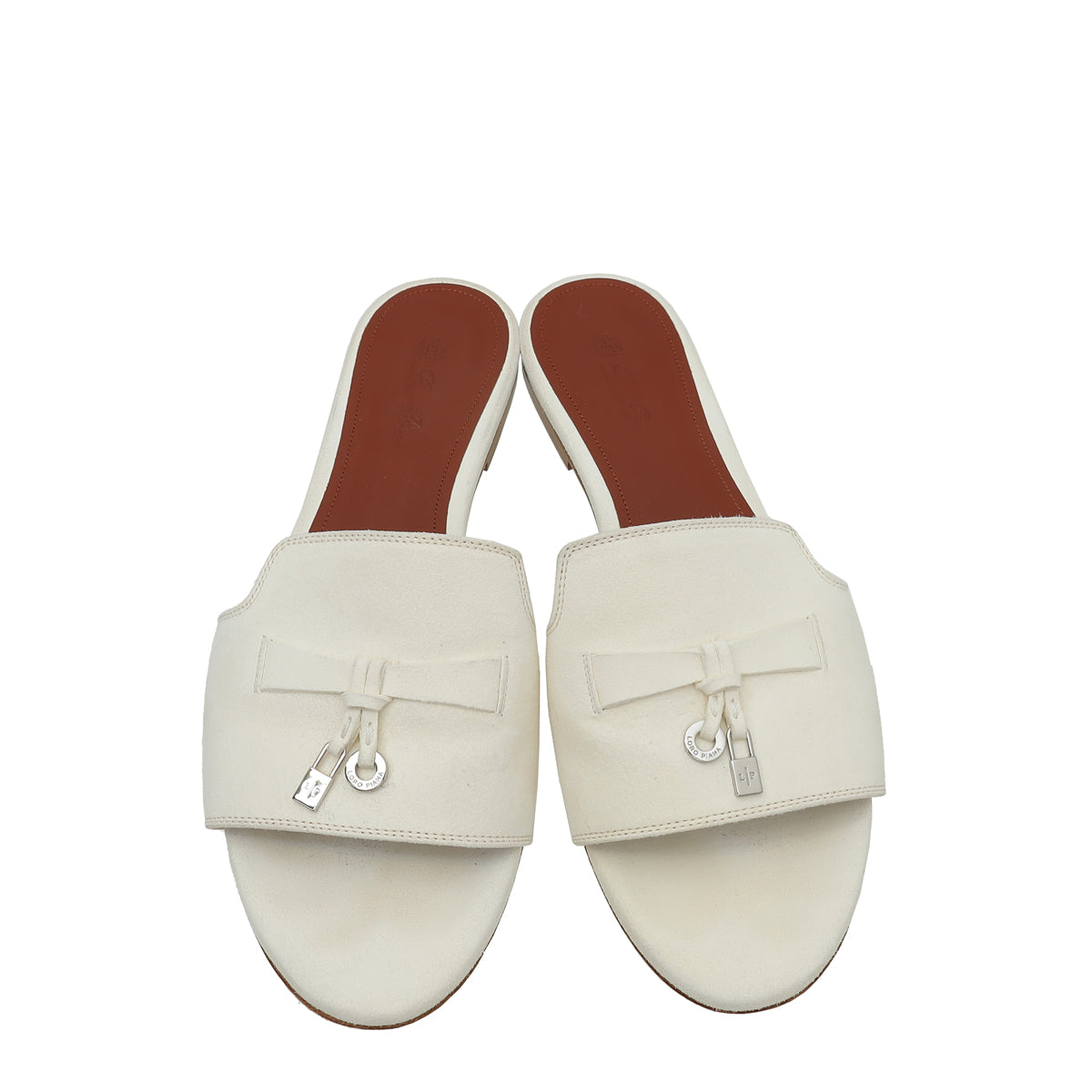 Loro Piana Whisper White Summer Charm Flat Sandal 39