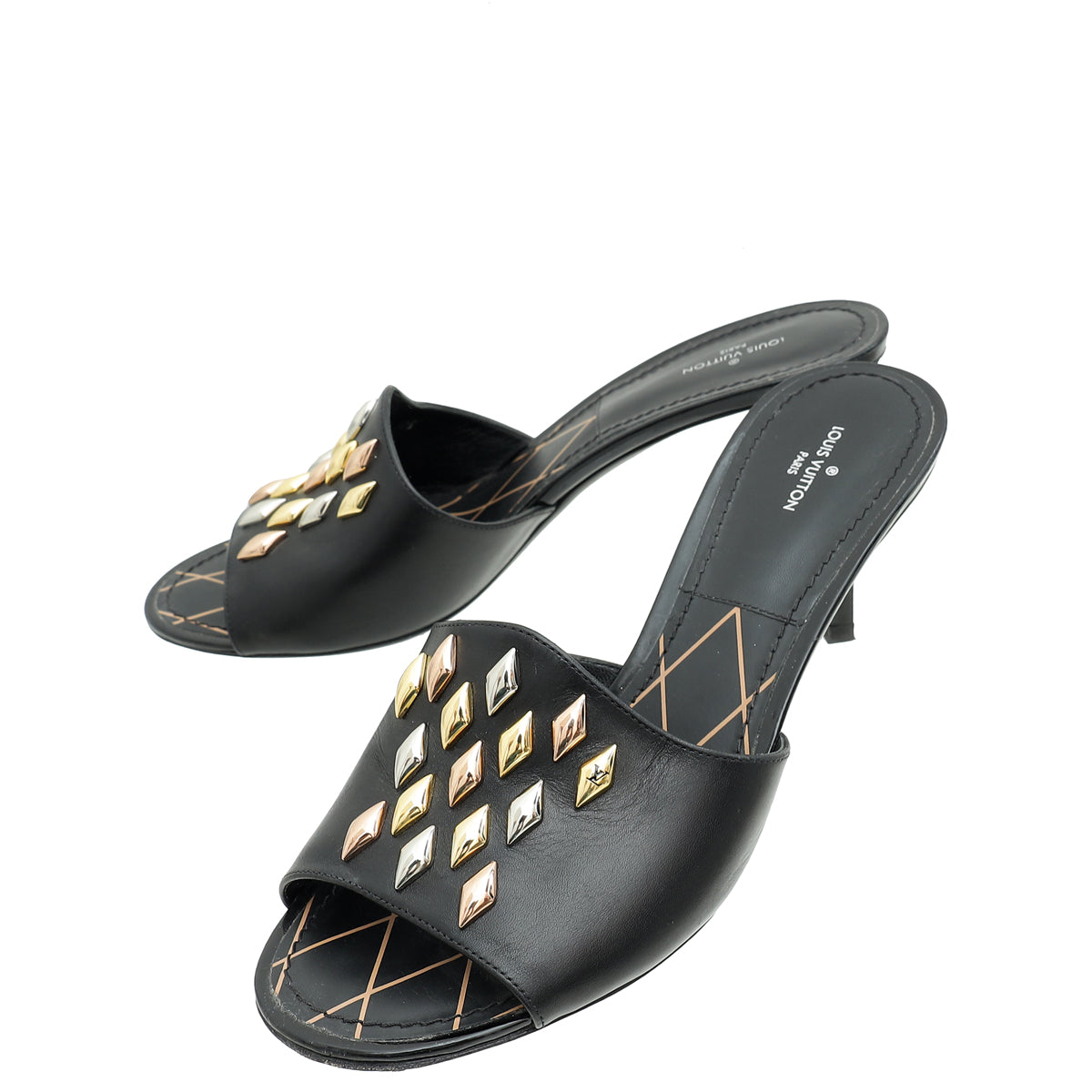 Louis Vuitton Black Studded Slide Sandals 38.5