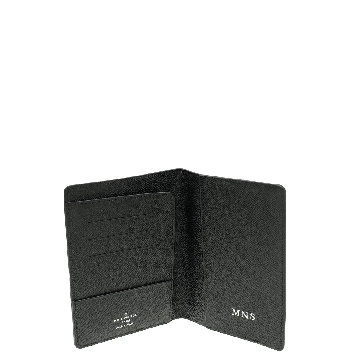 Louis Vuitton Black Taiga Passport Cover W/ MNS Initials