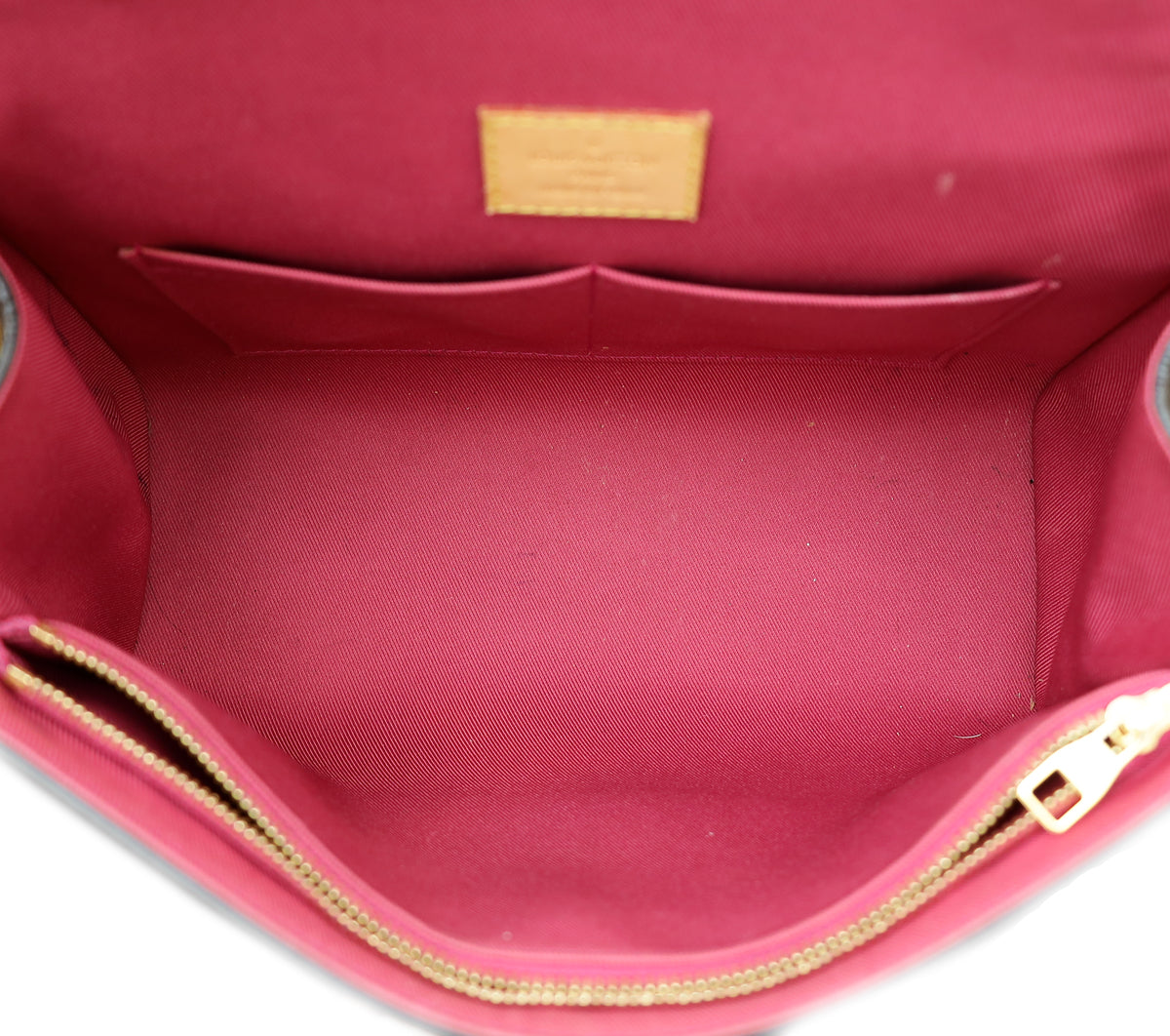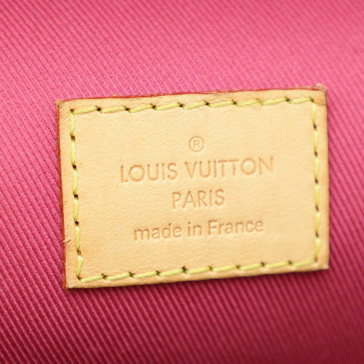 Material: Brown Monogram Canvas with Burgundy/Fuchsia Strap Leather Trim