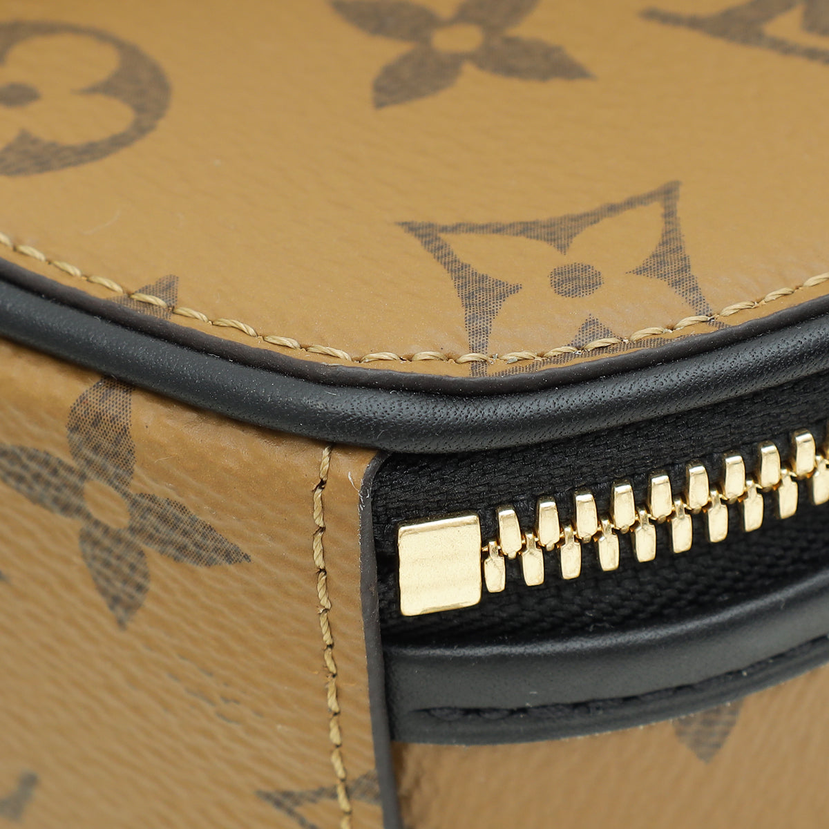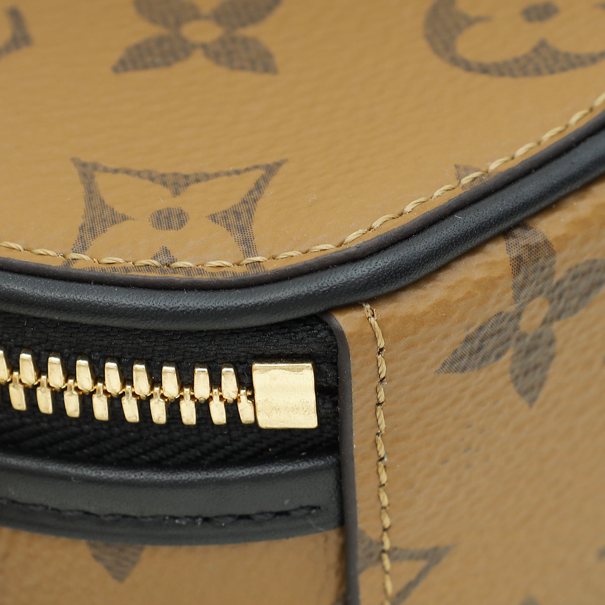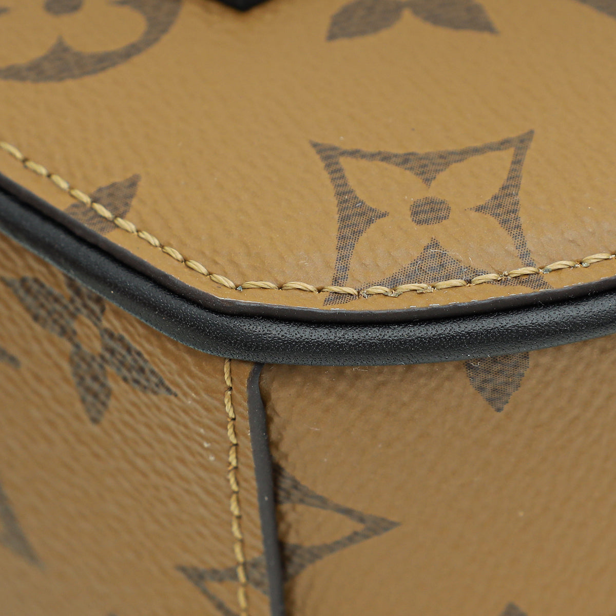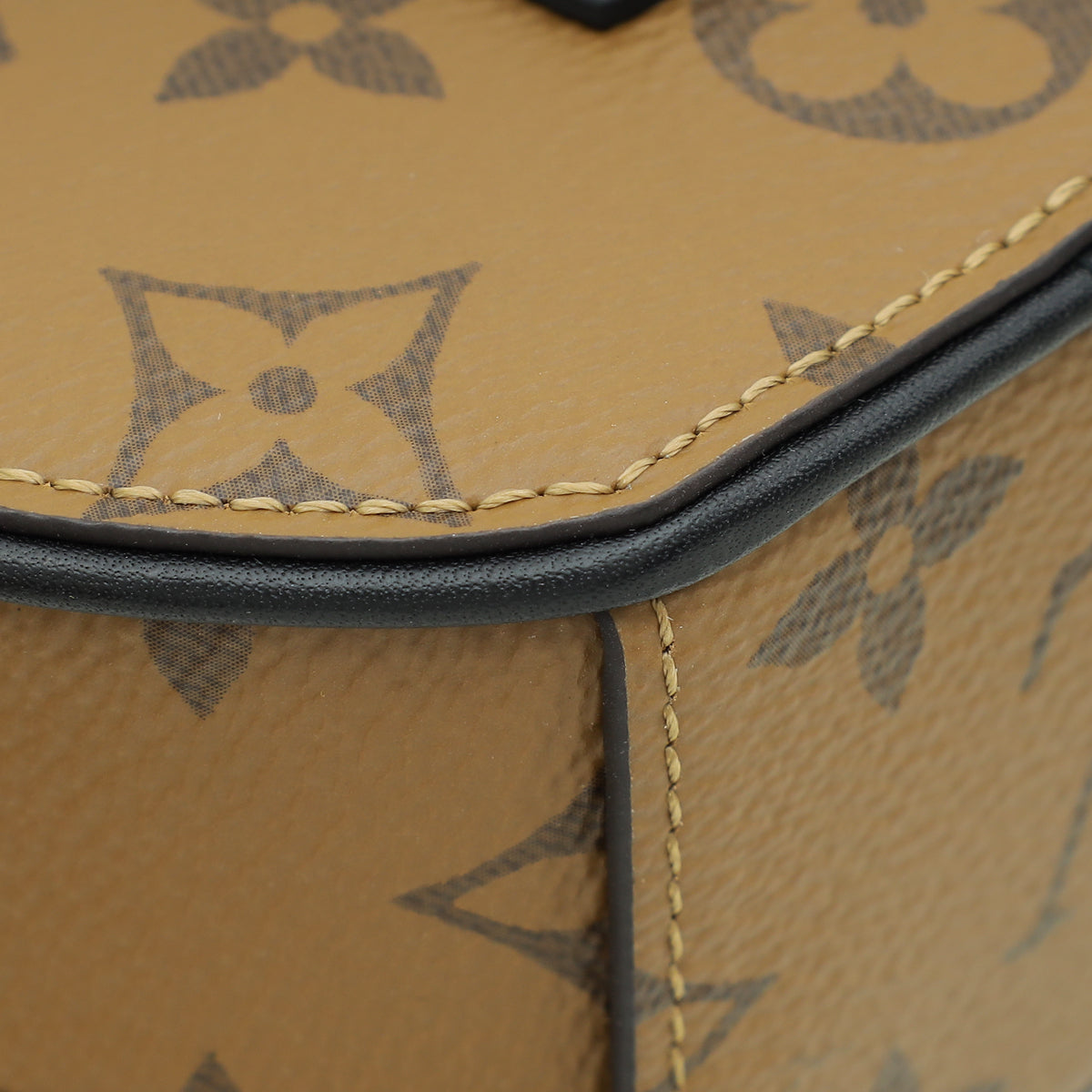 Material: Monogram Reverse Coated Canvas with Black Calfskin Leather Trim