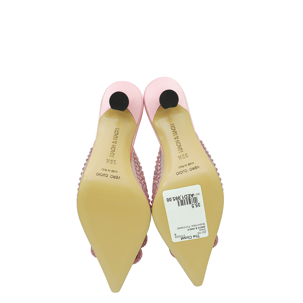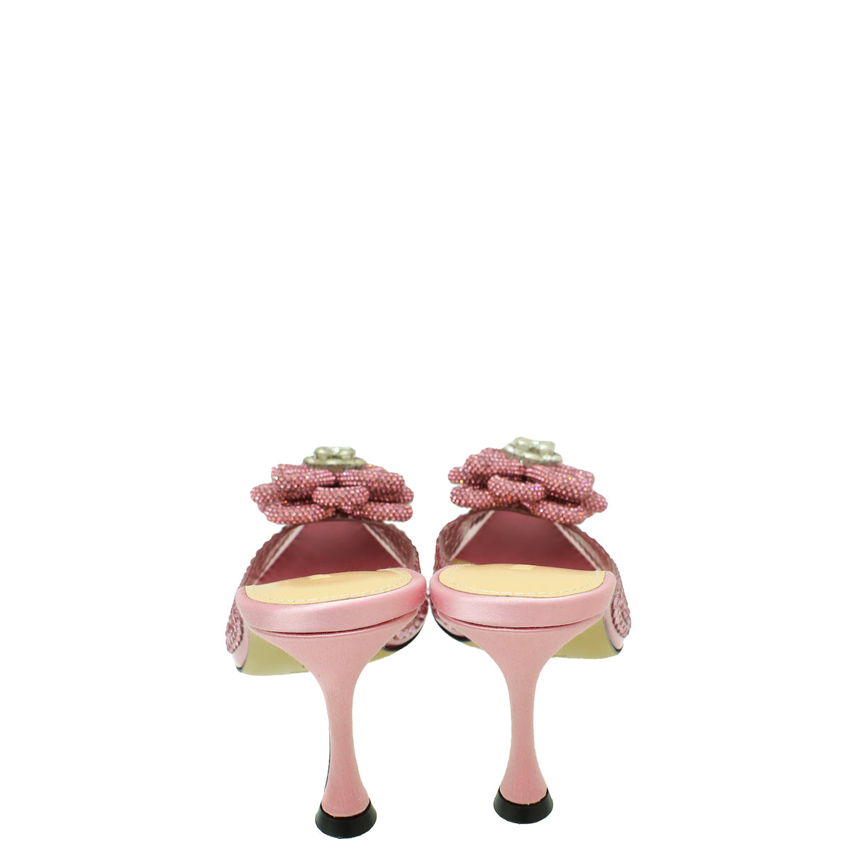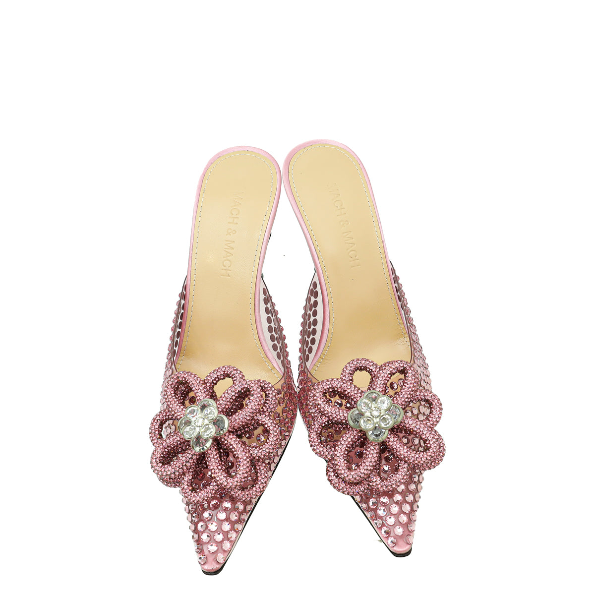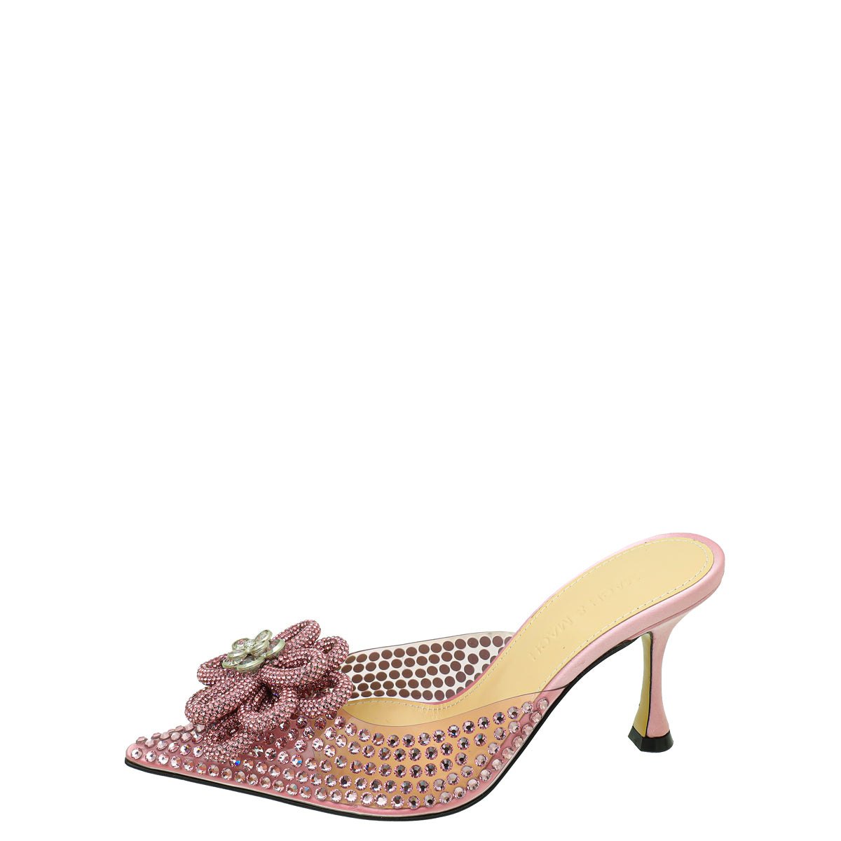 Mach & Mach Pink PVC & Satin Crystal Carrie Rose Mules 35.5