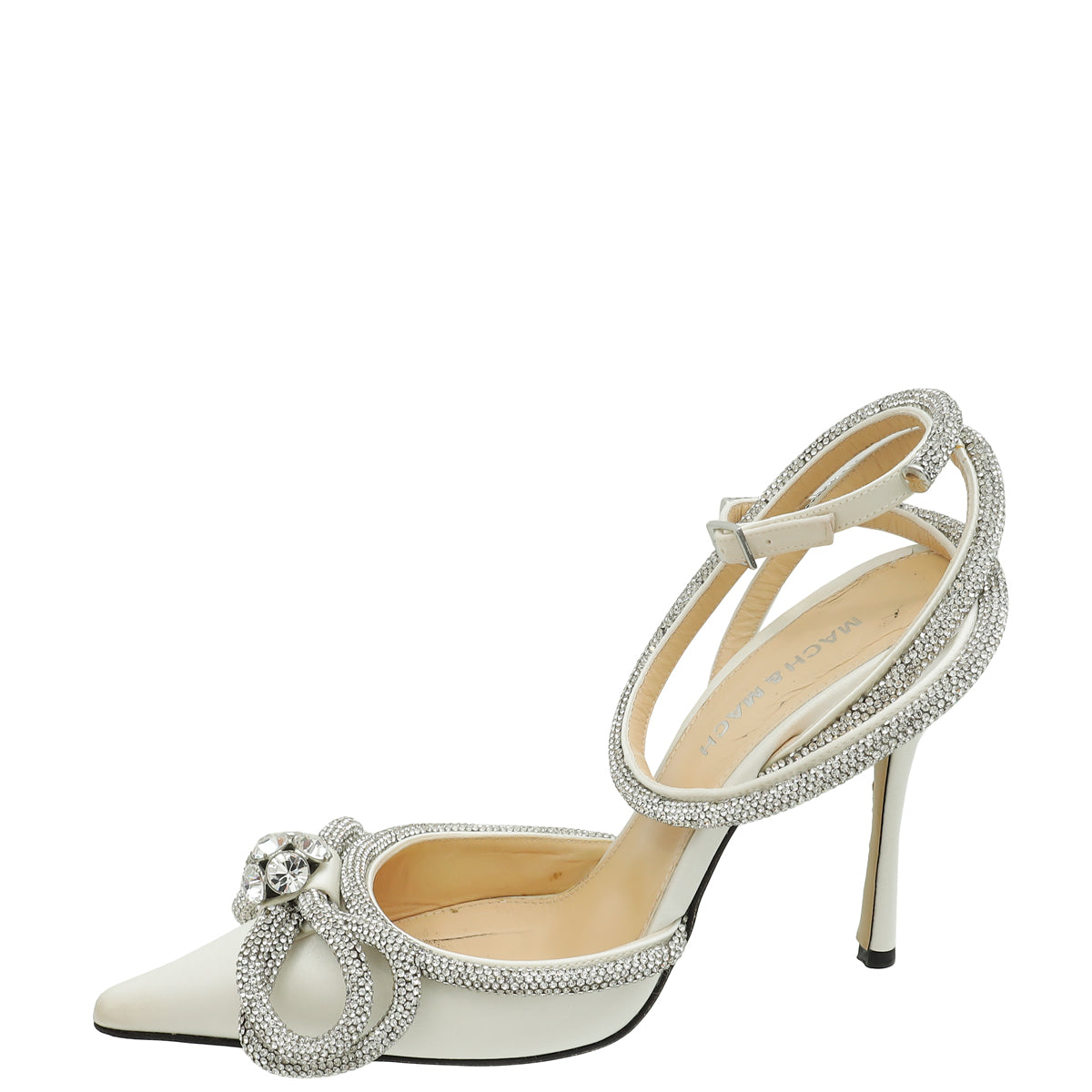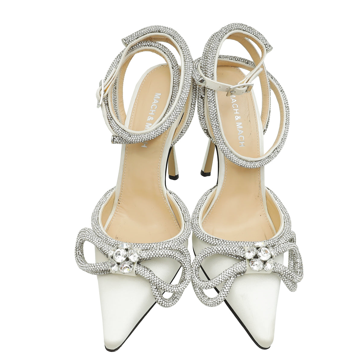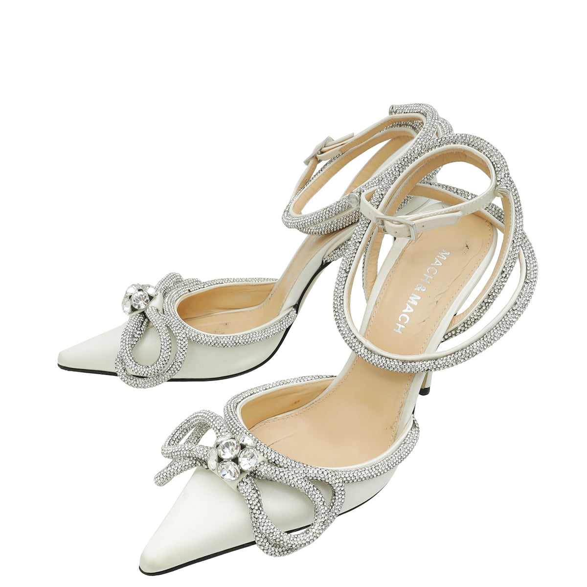 Mach & Mach White Satin Crystal Bow 110 Pumps 36