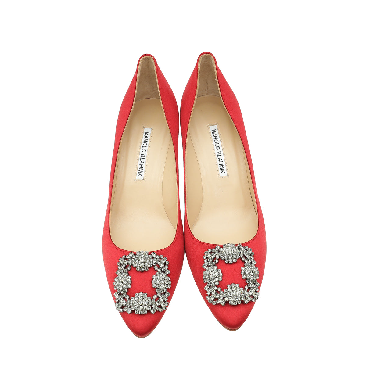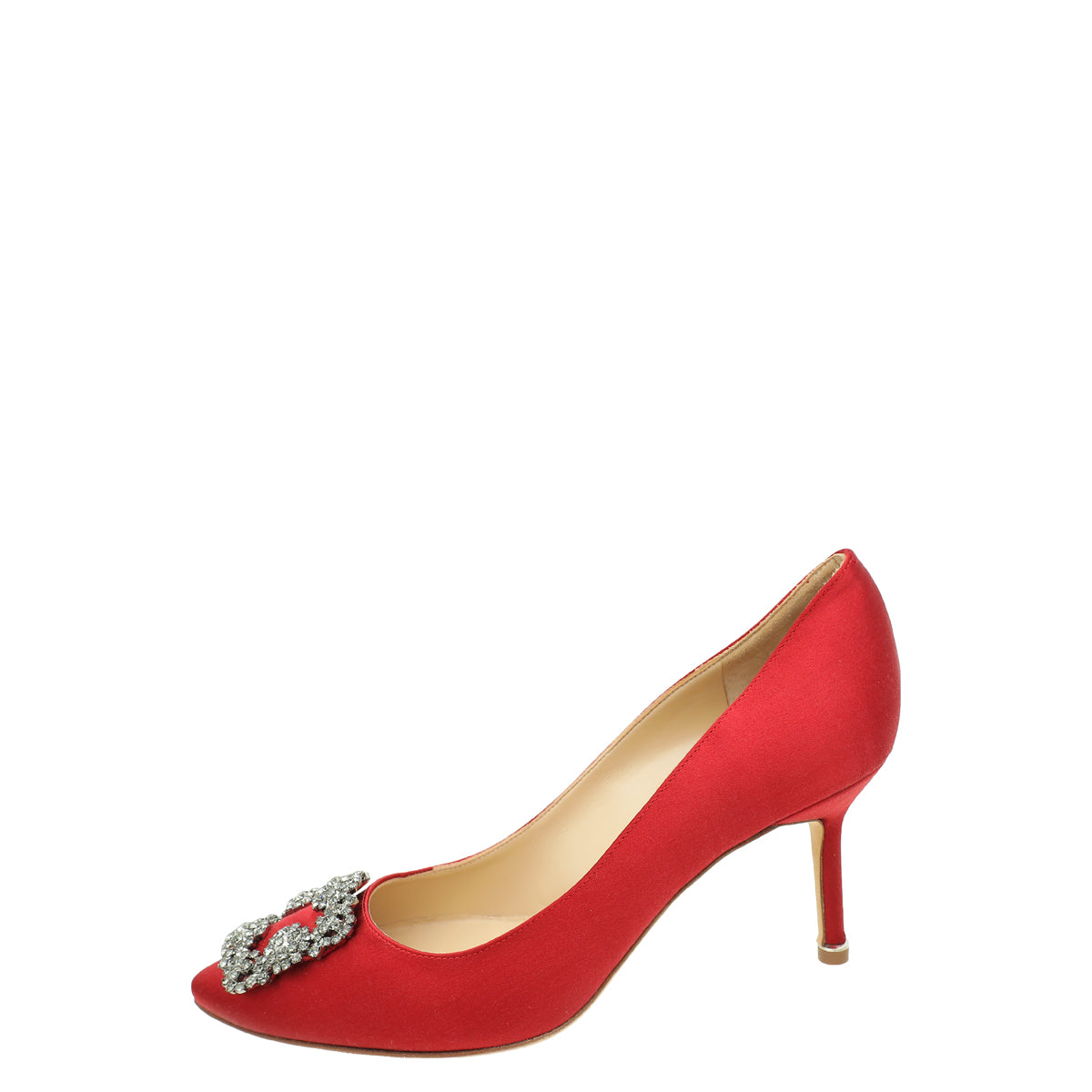 Manolo Blahnik Red Satin Hangisi Pump 39