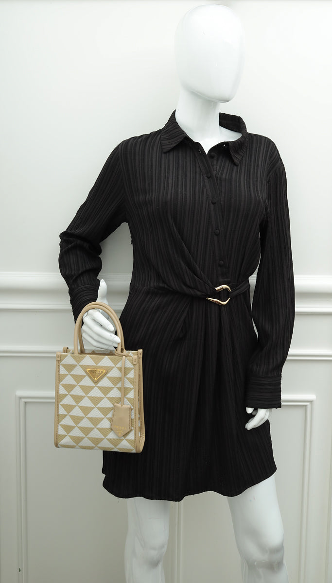 Prada Bicolor Symbole Embroidered Tote Bag