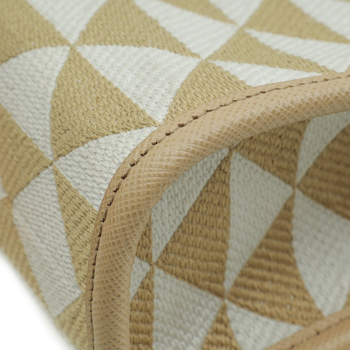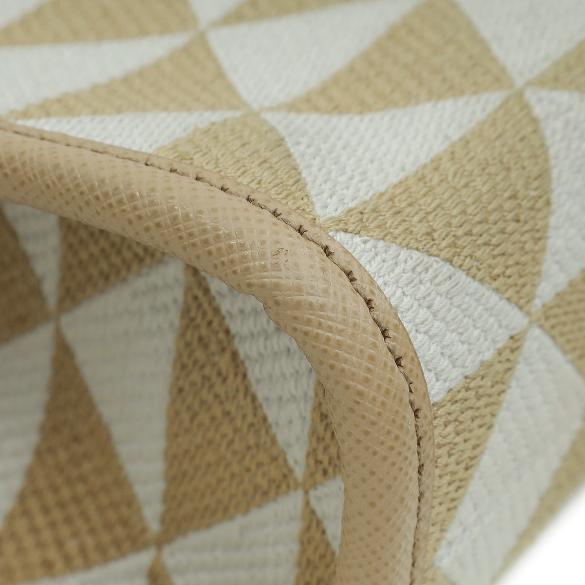- Material: Beige/Chalk White Fabric and Beige Saffiano Leather