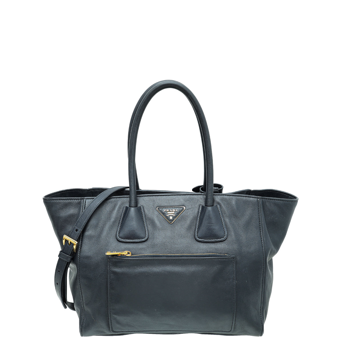 Prada Denim Vitello Phenix Shopping Tote Bag