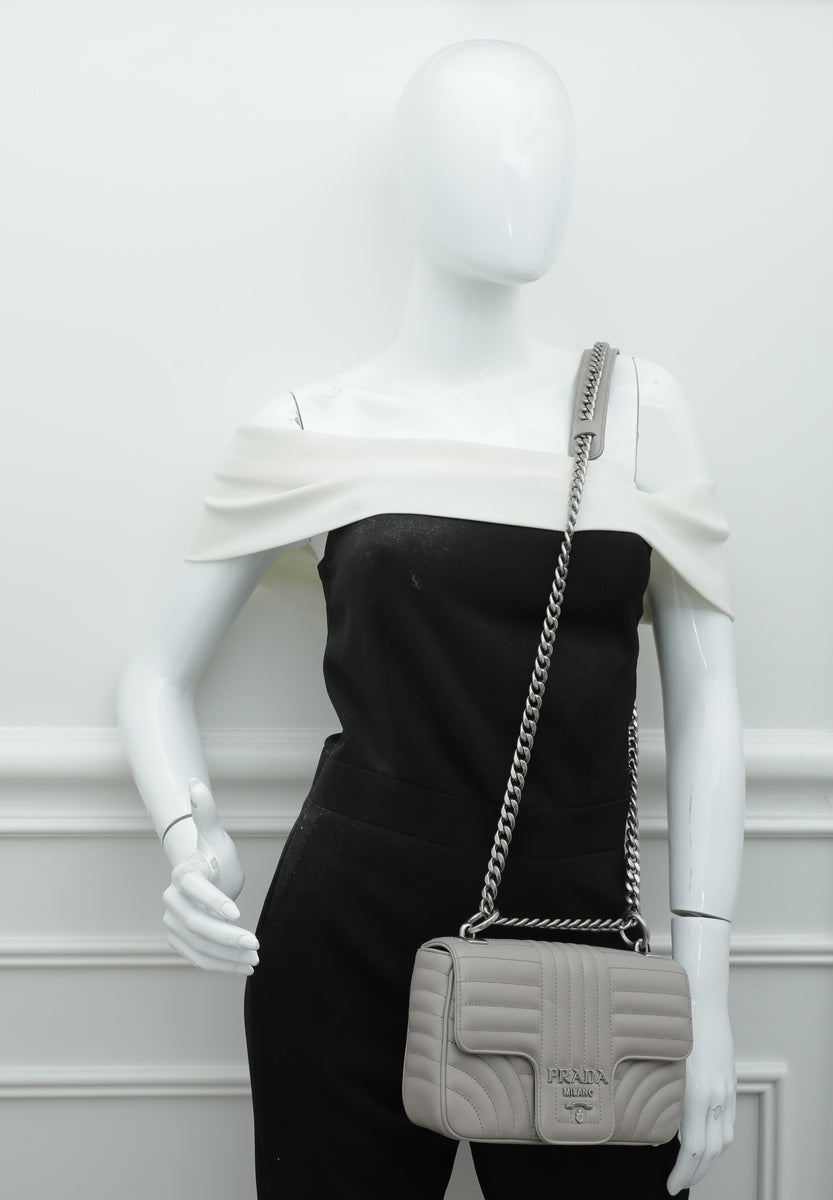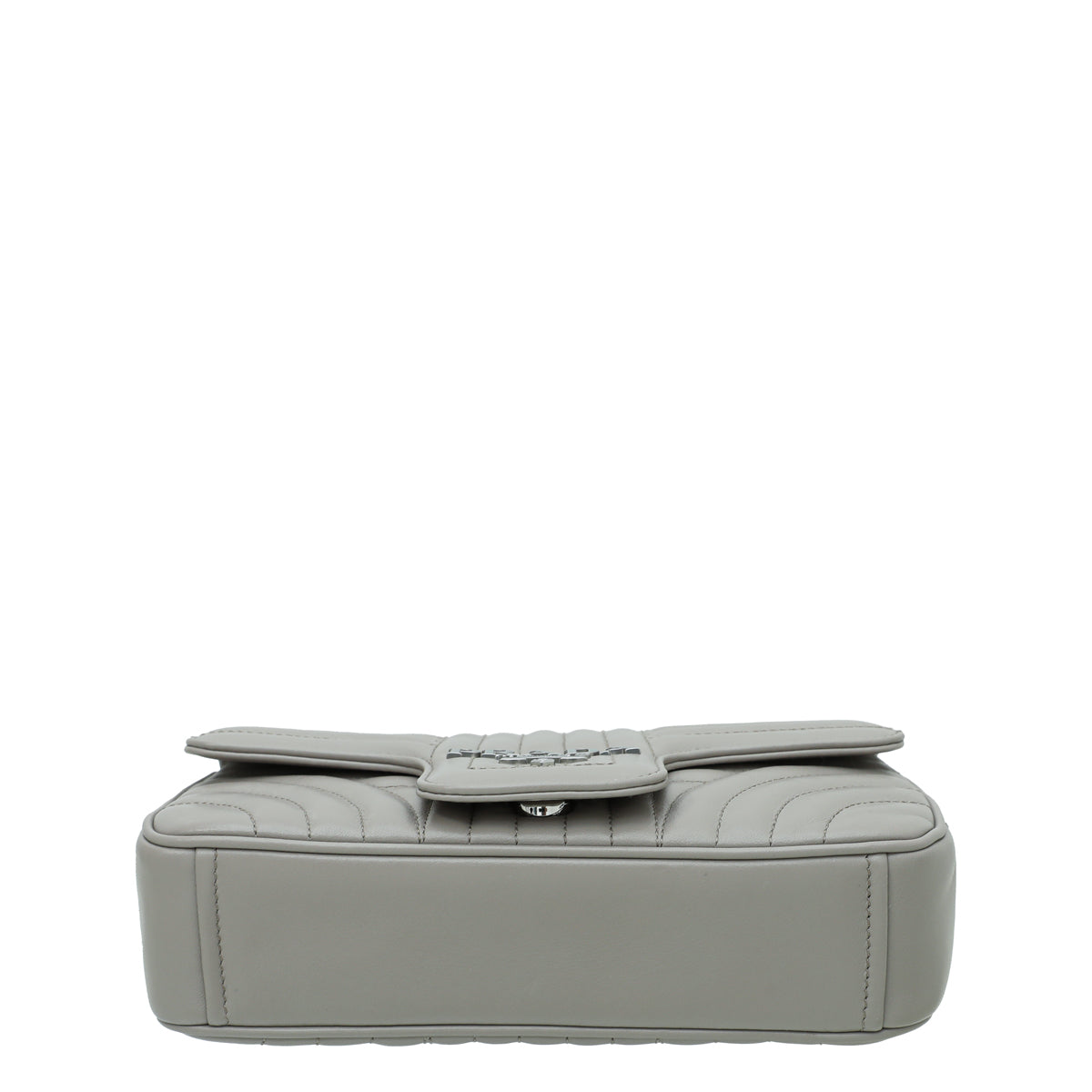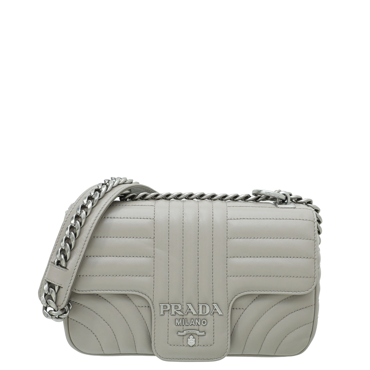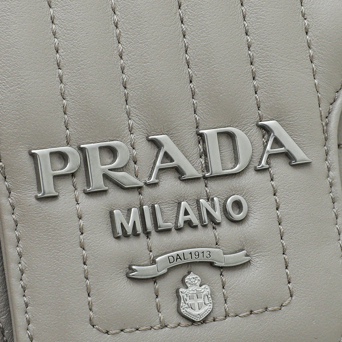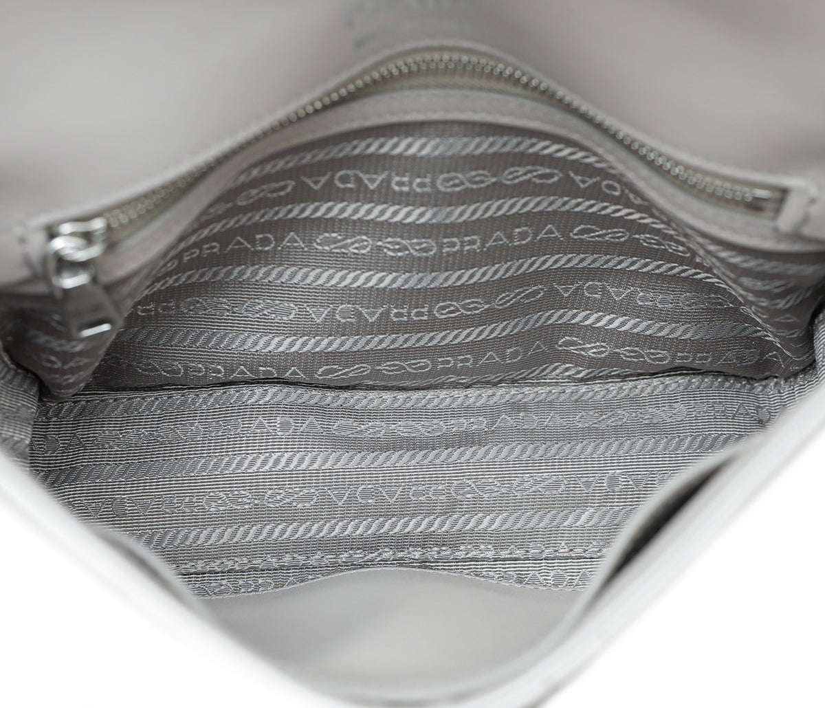 Prada Pomice Grey Impunture Diagramme Flap Bag