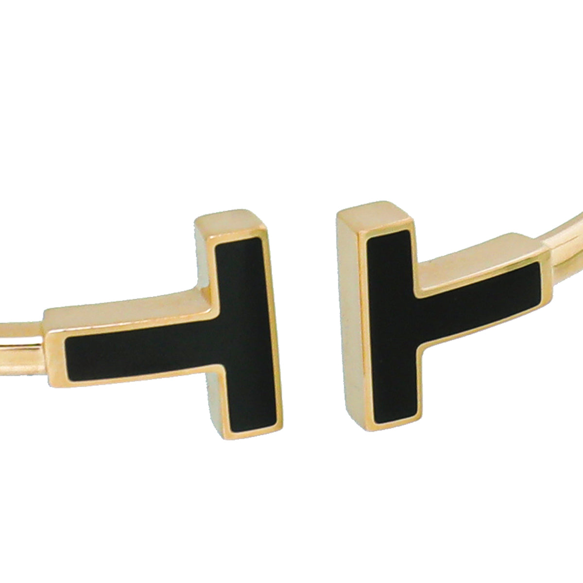 Tiffany & Co 18K Rose Gold Onyx T Narrow Wire Small Bracelet
