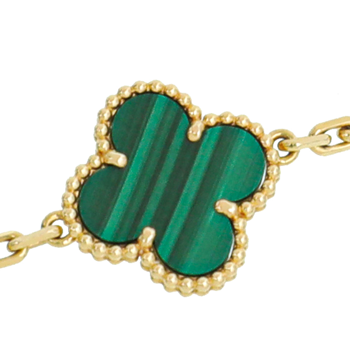 Van Cleef & Arpels 18K Yellow Gold 5 Motifs Malachite Vintage Alhambra Bracelet