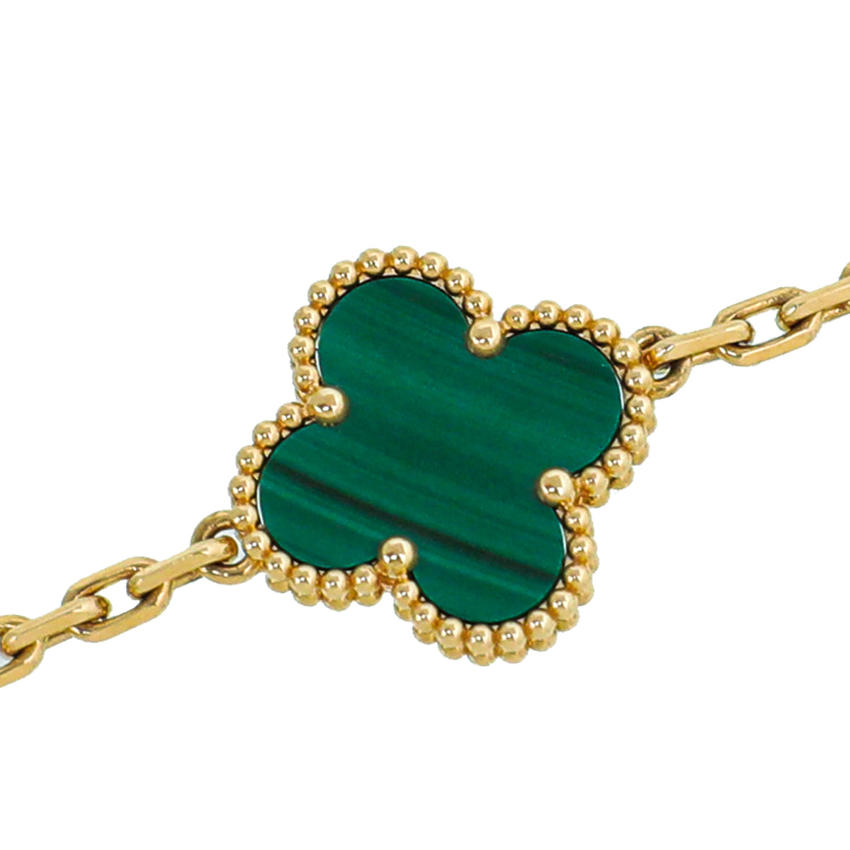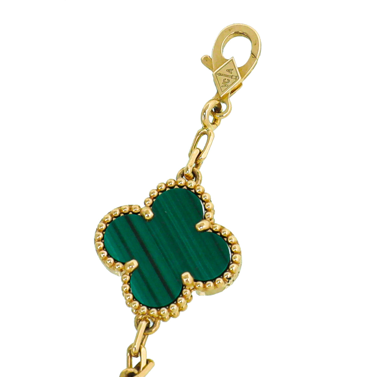 Van Cleef & Arpels 18K Yellow Gold Malachite 5 Motifs Vintage Alhambra Bracelet