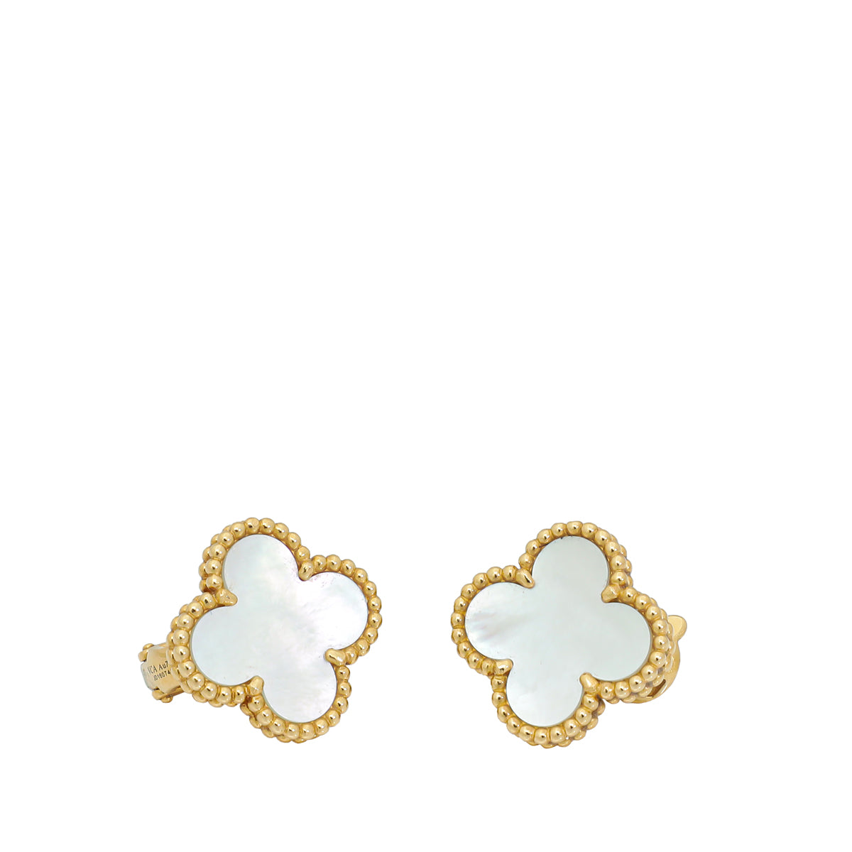 Van Cleef & Arpels 18K Yellow Gold MOP Vintage Alhambra Earrings
