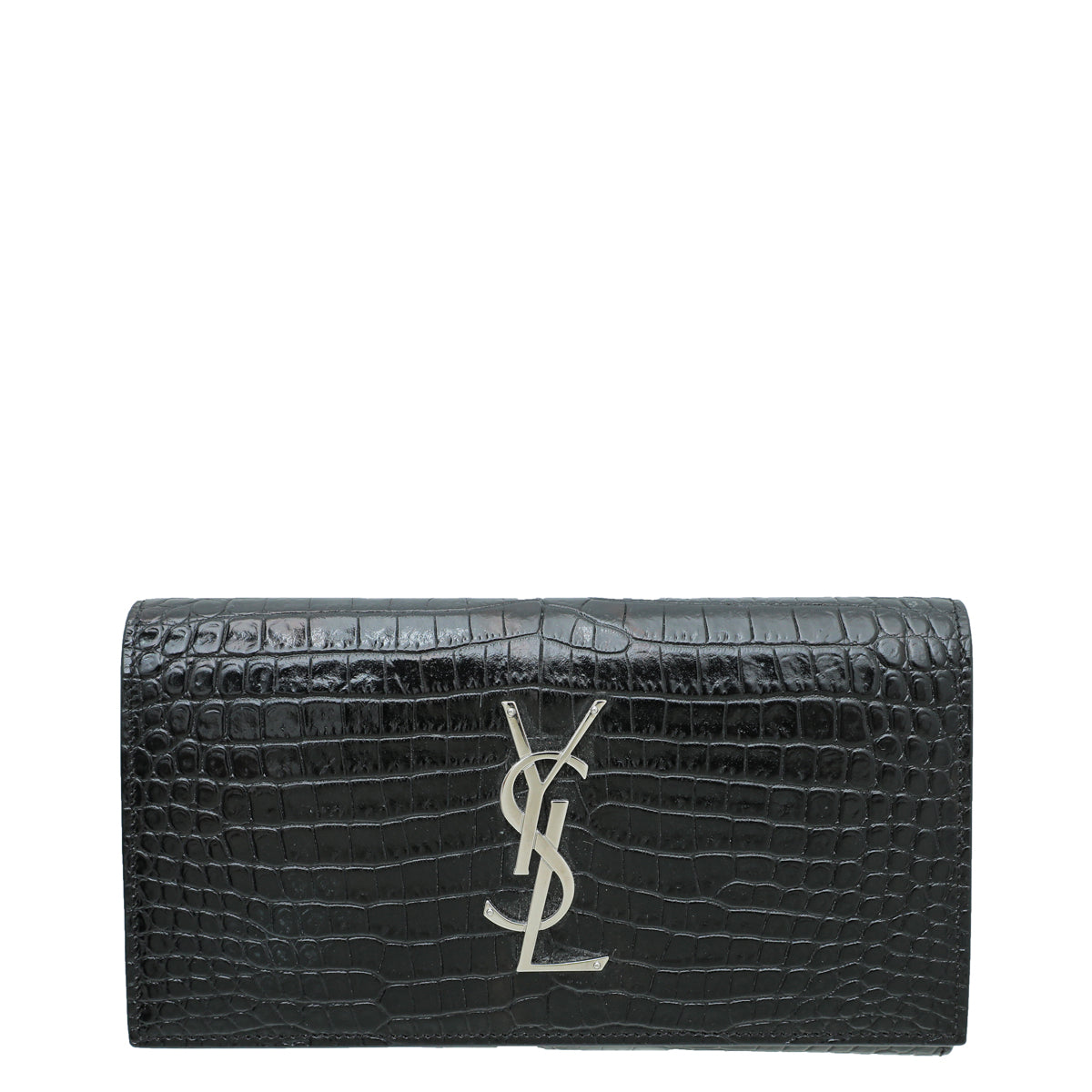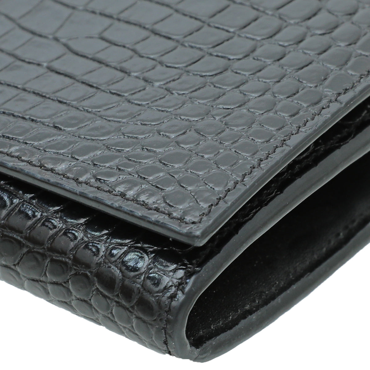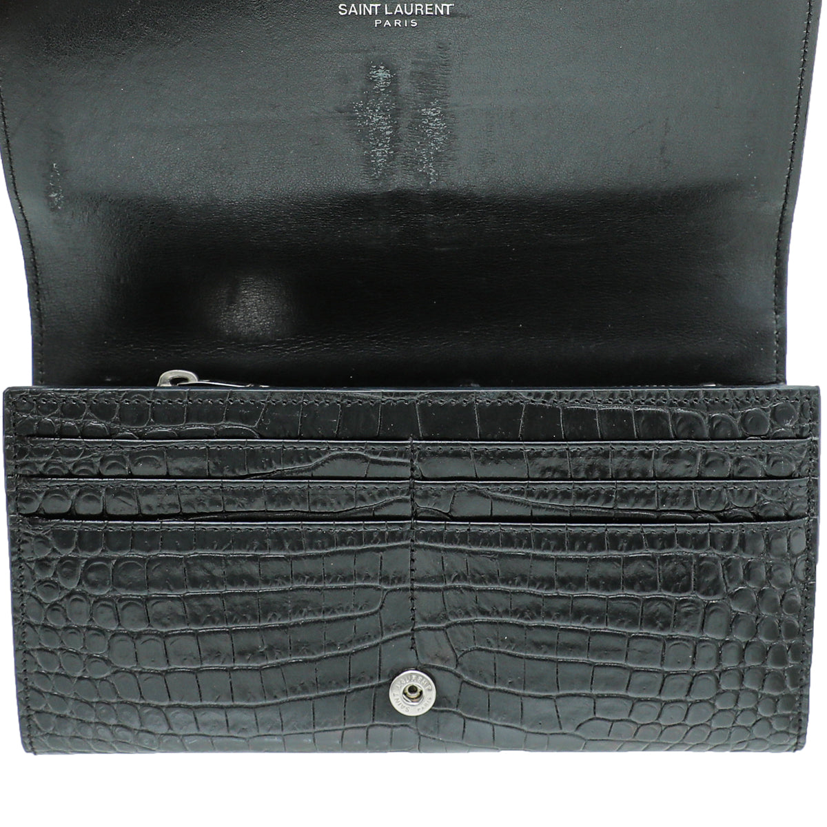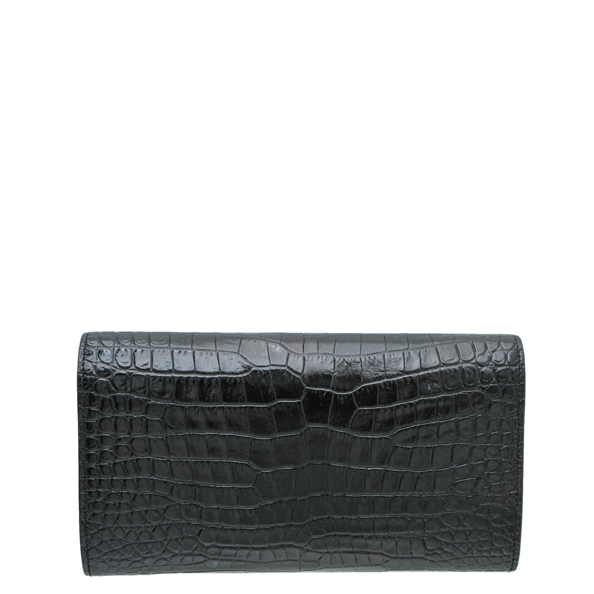 YSL Black Croc Embossed Continental Wallet-YSL-THE CLOSET
