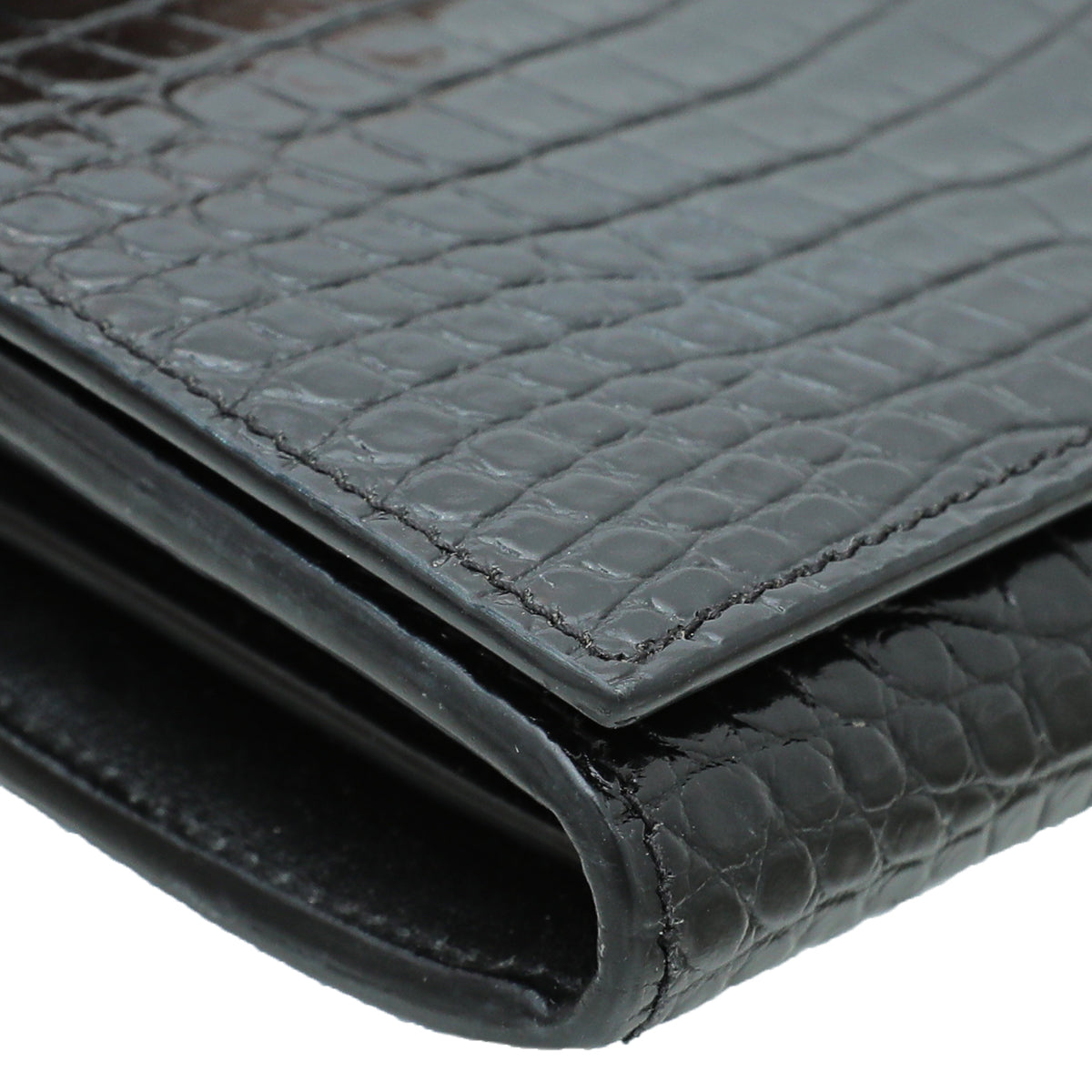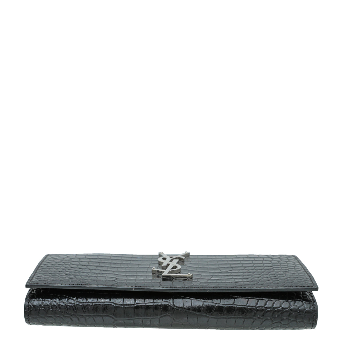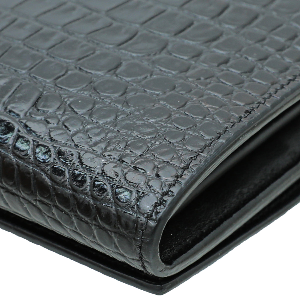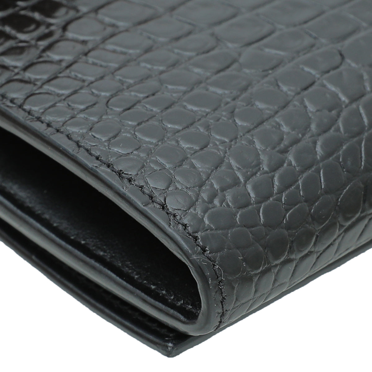 YSL Black Croc Embossed Continental Wallet-YSL-THE CLOSET