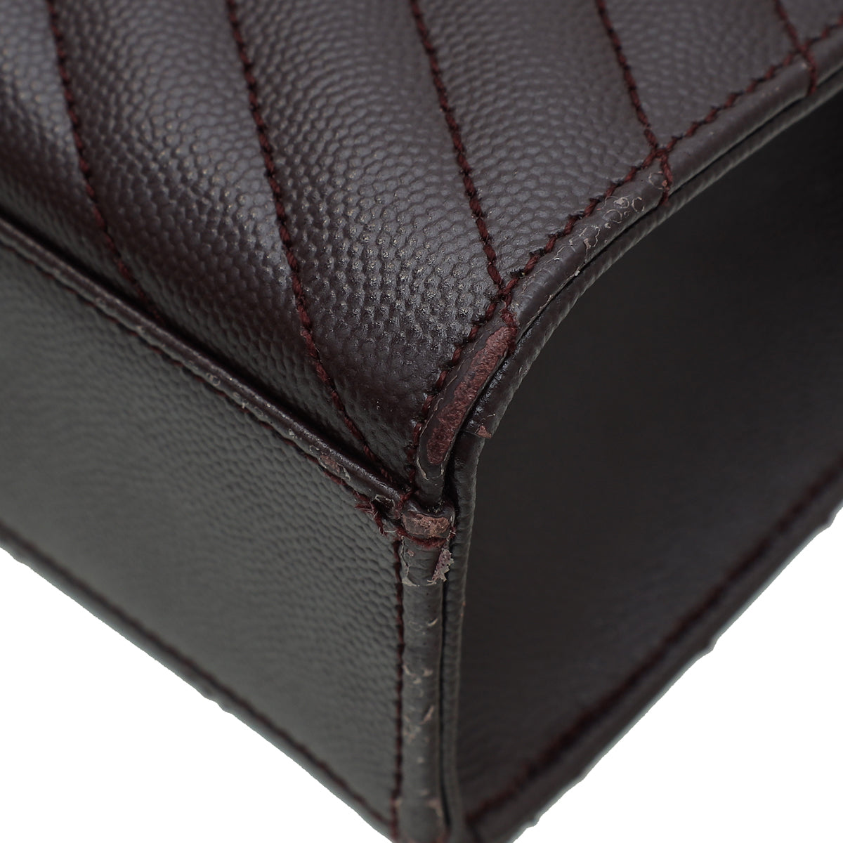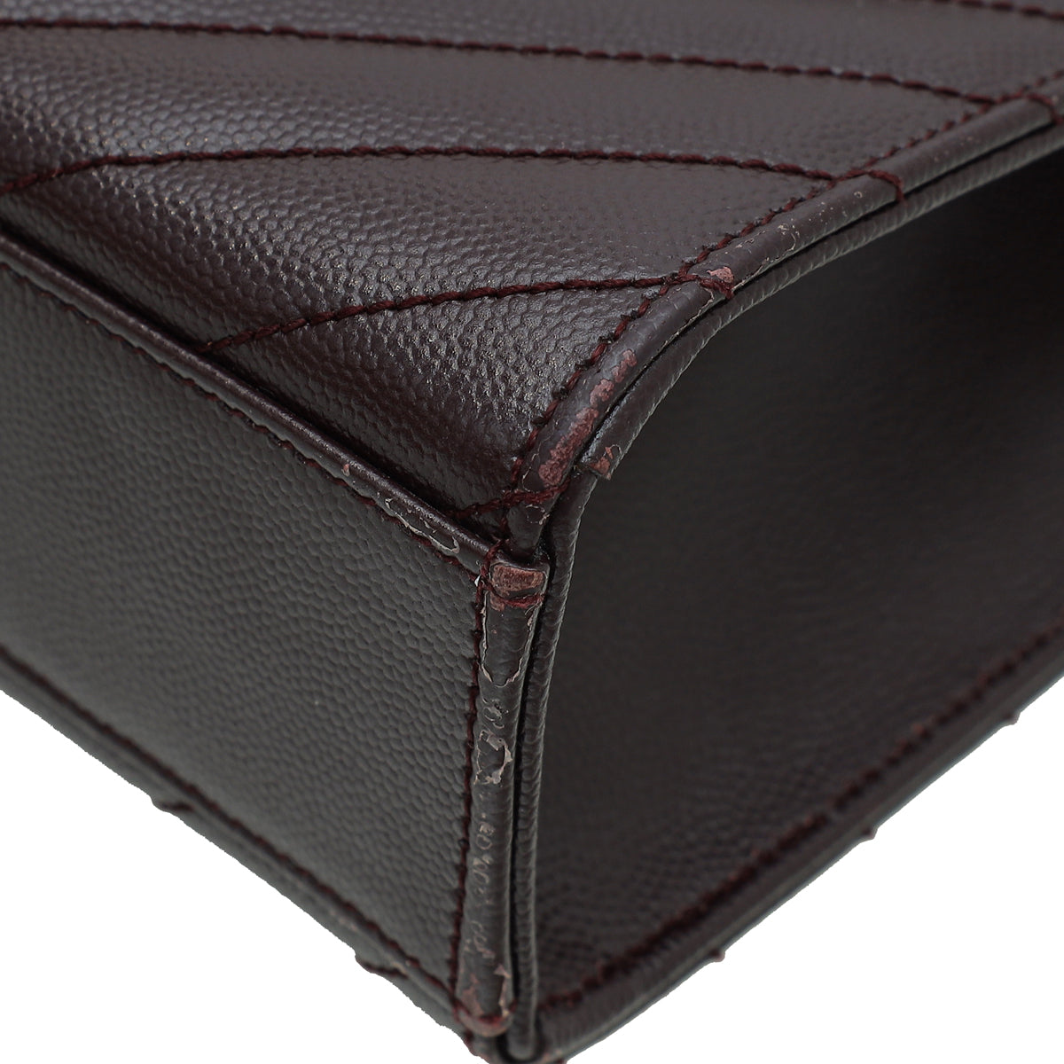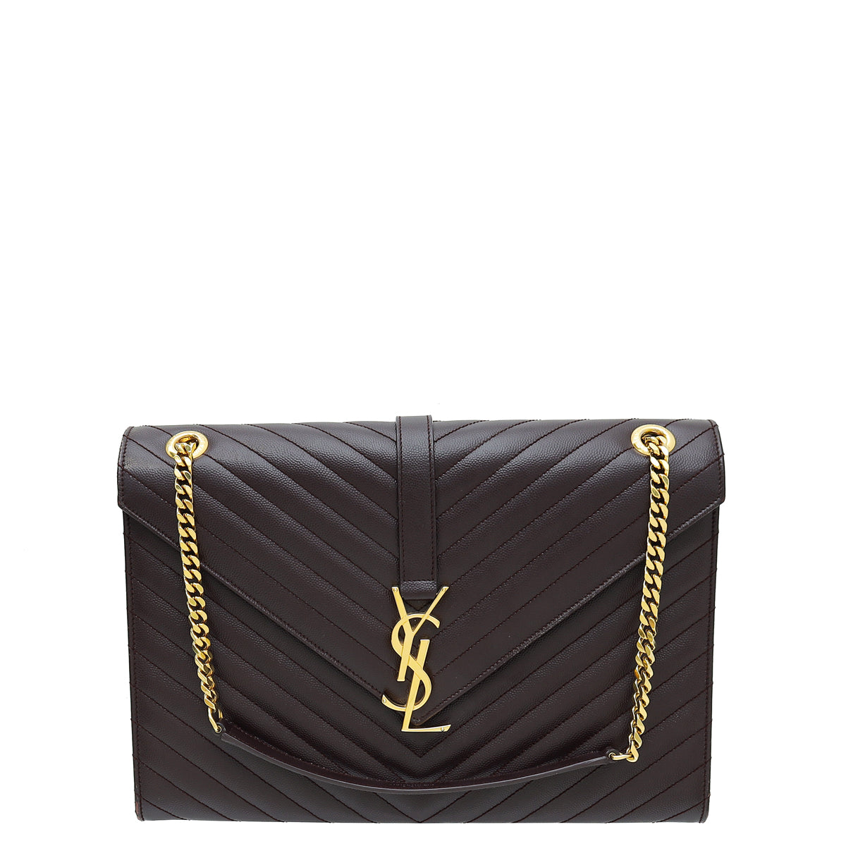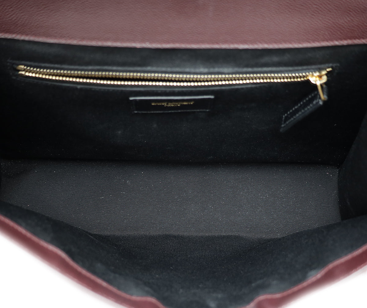 YSL Burgundy Monogram Chevron Satchel Large Bag
