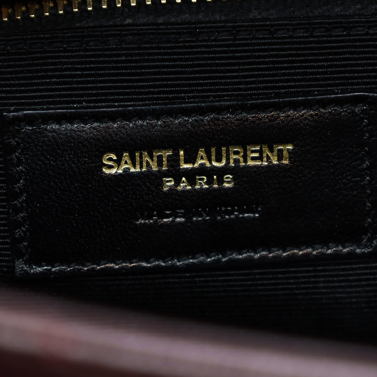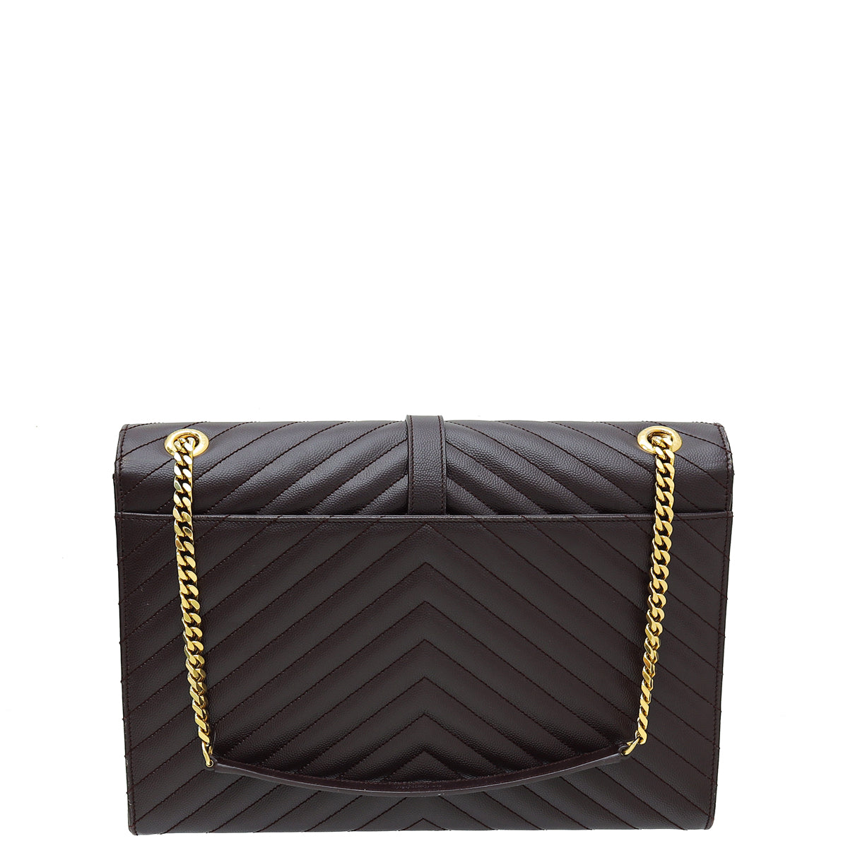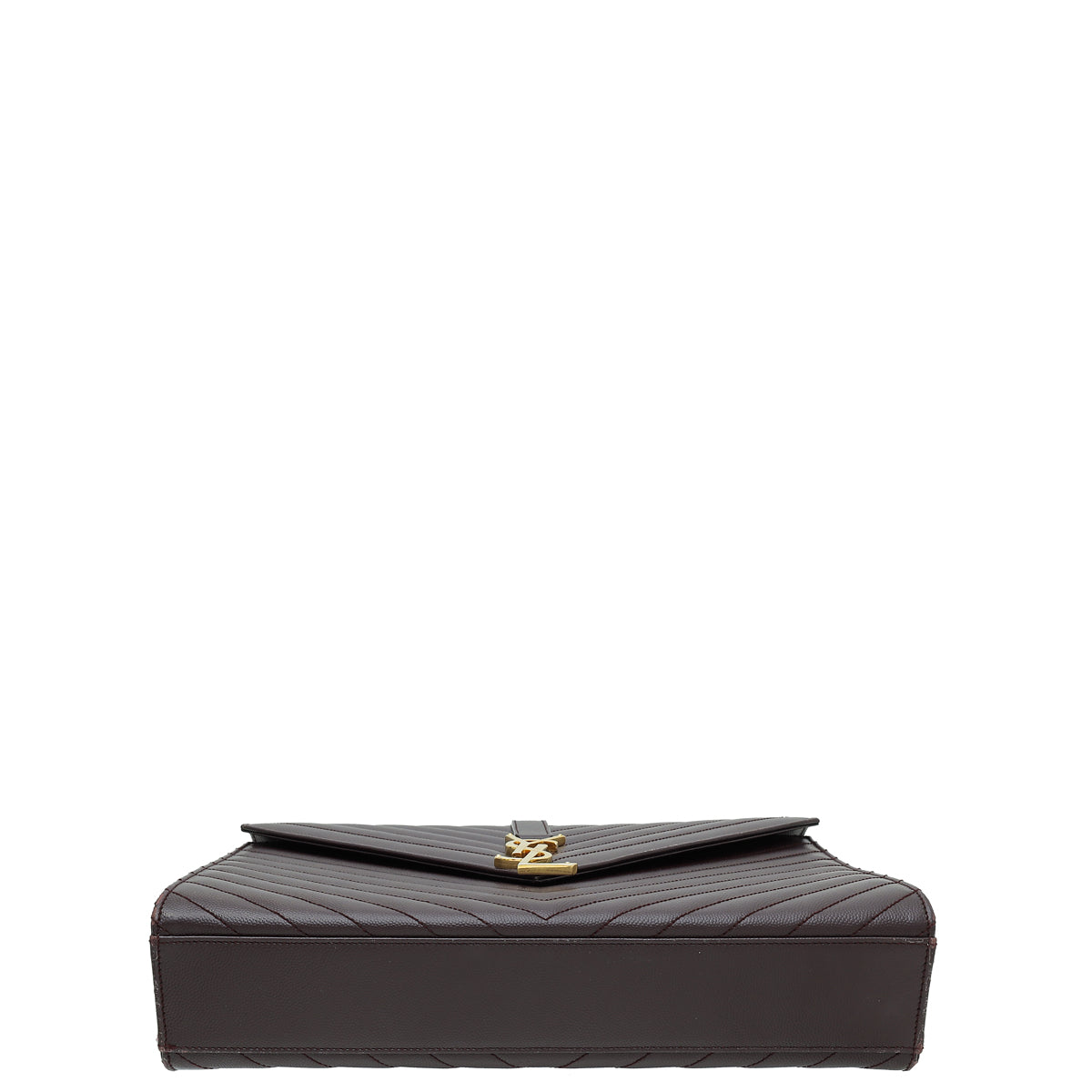 YSL Burgundy Monogram Chevron Satchel Large Bag
