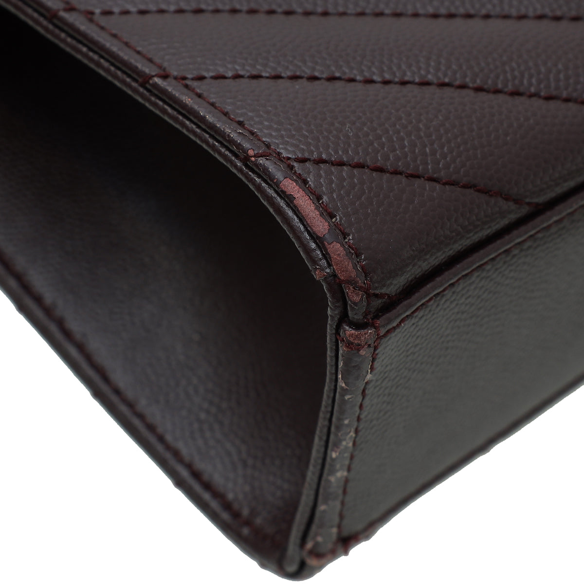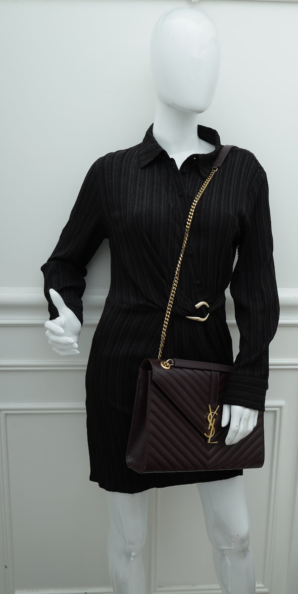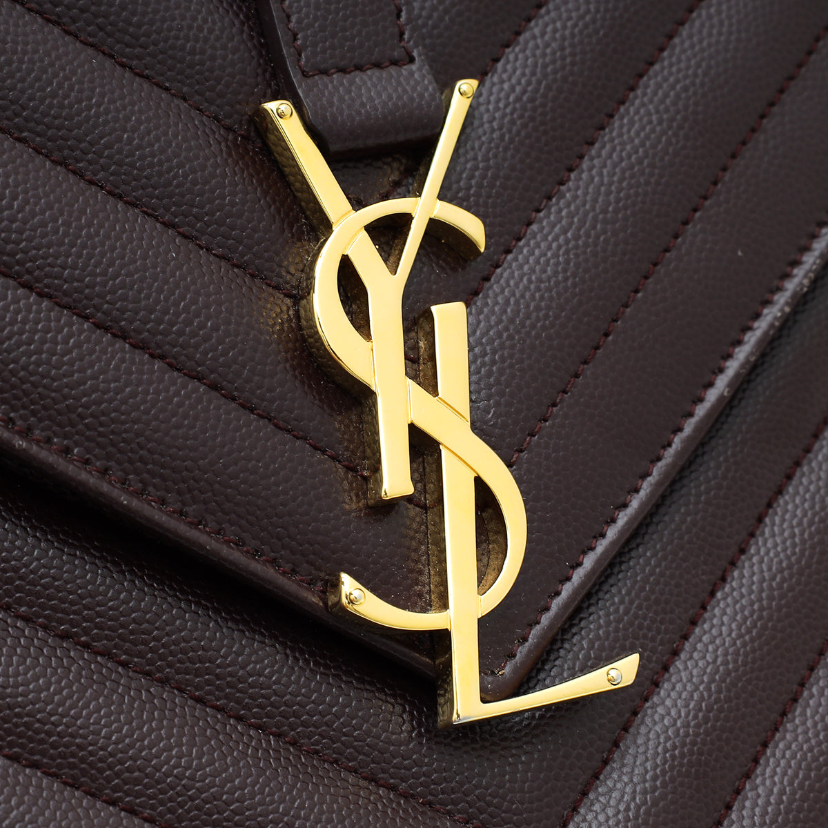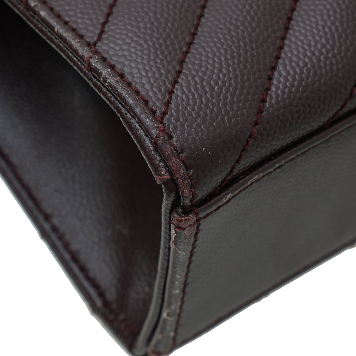 YSL Burgundy Monogram Chevron Satchel Large Bag