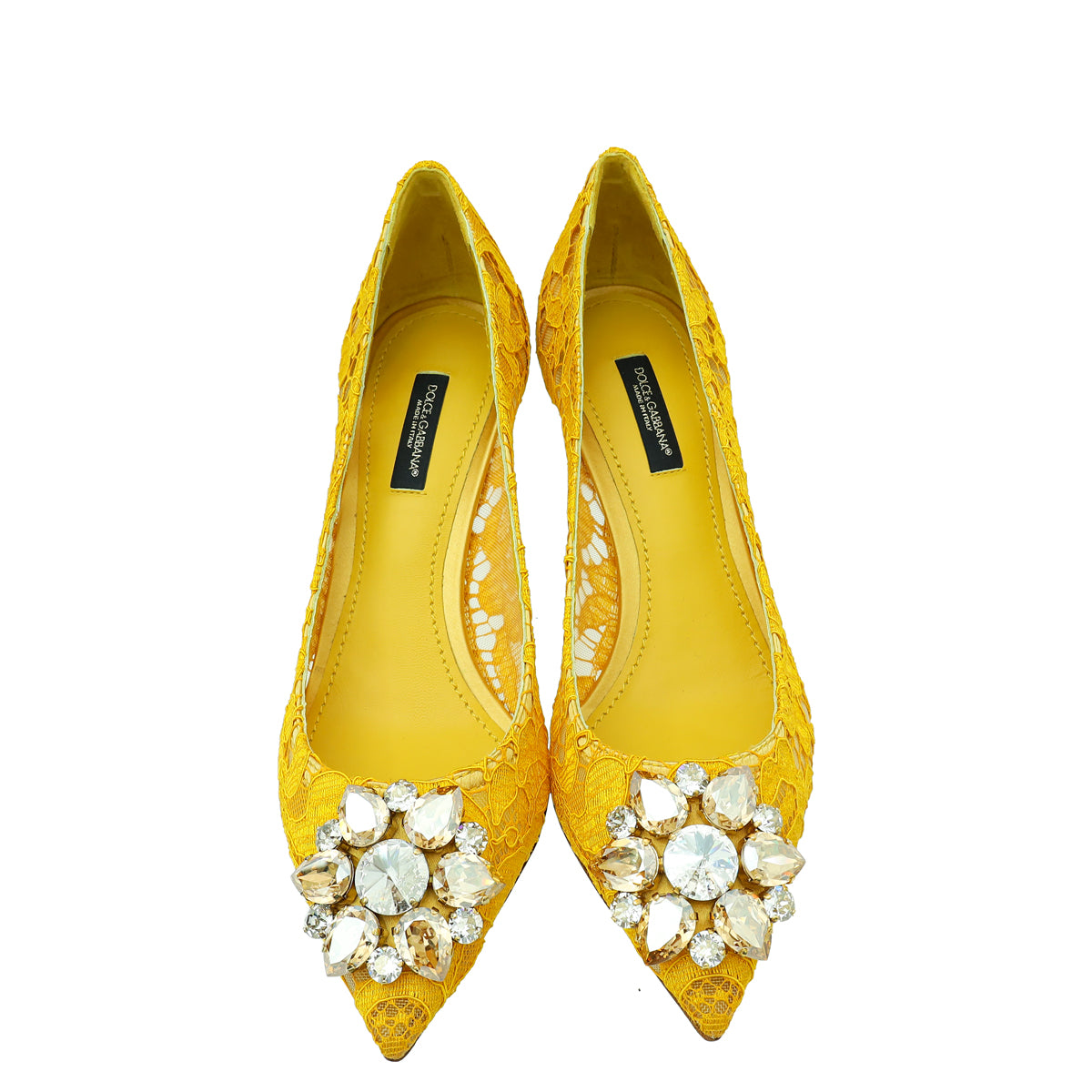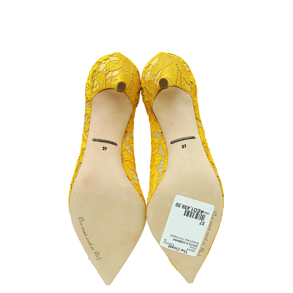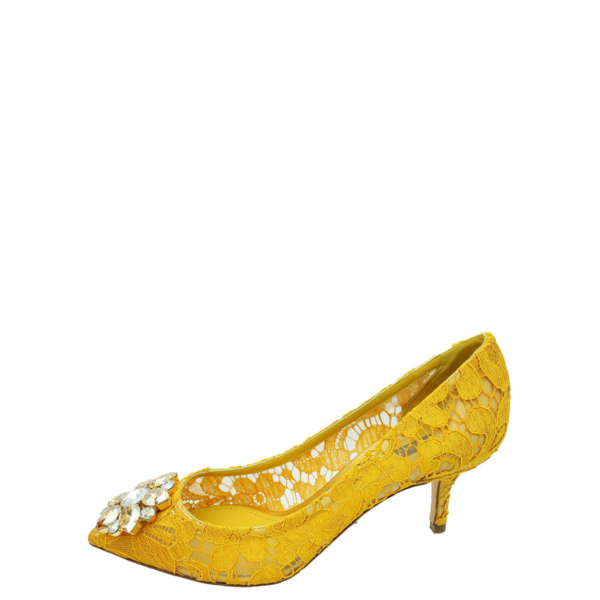 Dolce & Gabbana Yellow Bellucci Lace Embellished Pump 37