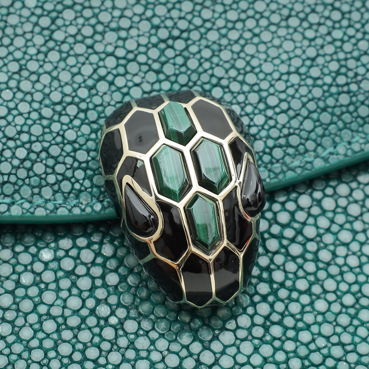 Material: Emerald Green Stingray Galuchat Leather with Black/Green Enamel and Black Onyx Eyes
