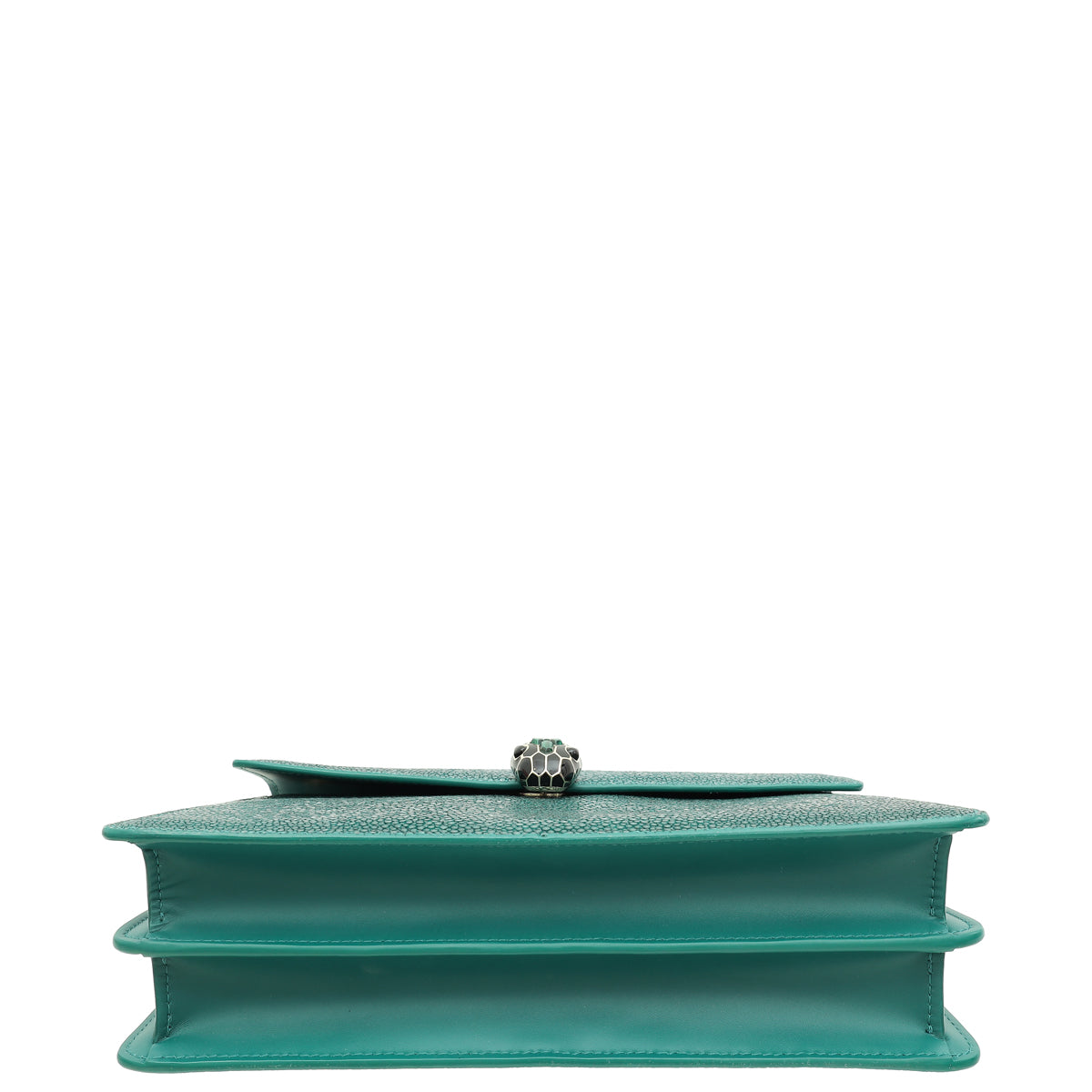 Bvlgari Emerald Green Stingray Galuchat Serpenti Forever Medium Shoulder Bag
