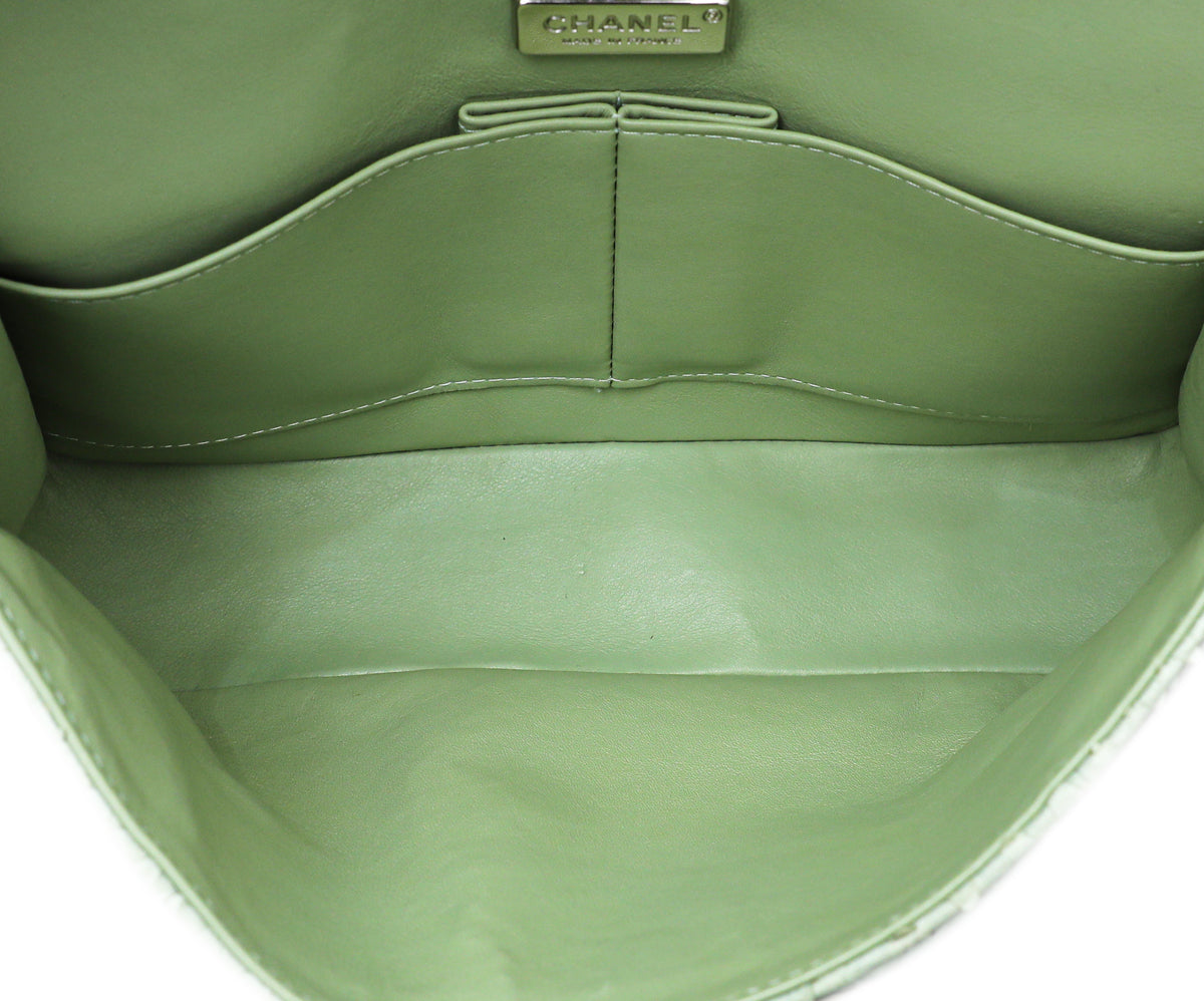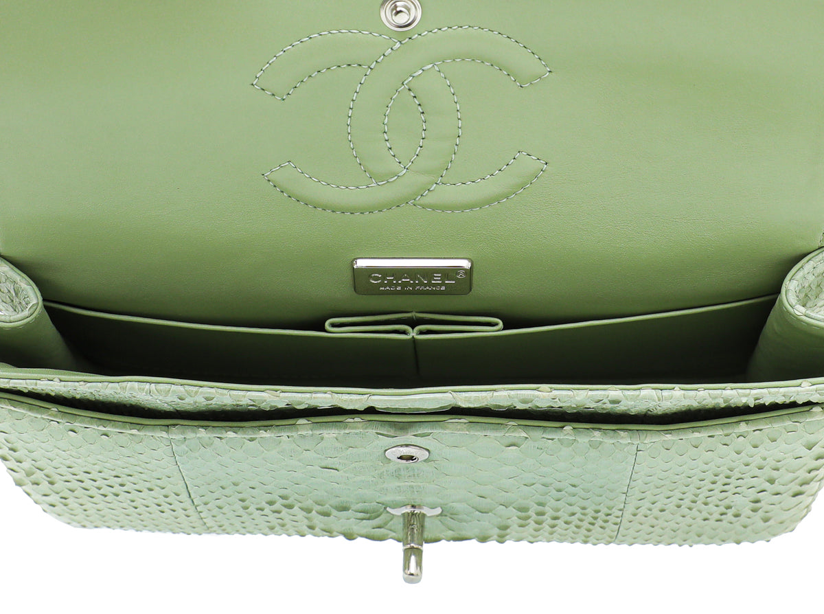 Chanel Light Green Python Classic Double Flap Medium Bag
