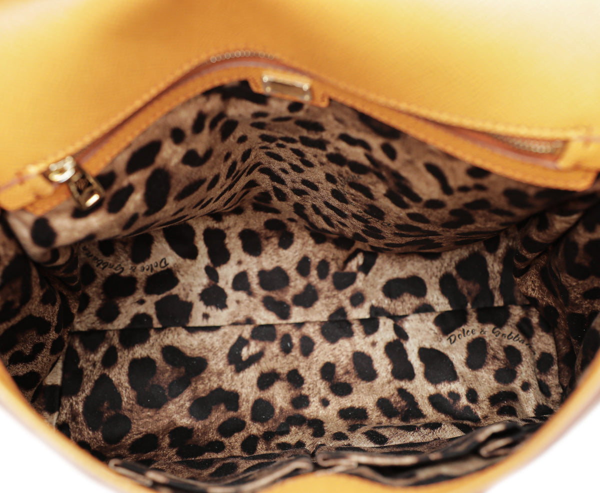 Material: Mustard Dauphine Leather and Interior Leopard Print